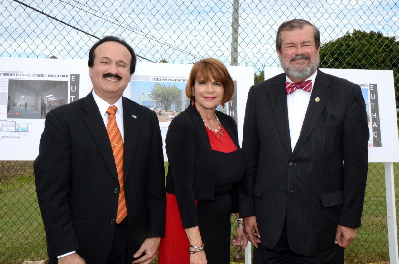 El proyecto dará una inyección económica al área oeste. De izquierda a derecha: el alcalde de Mayagüez, José Guillermo Rodríguez, la rectora del Campus, Dra. Olga Hernández de Patiño y el presidente de la PUCPR, Dr. Jorge Iván Vélez Arocho.