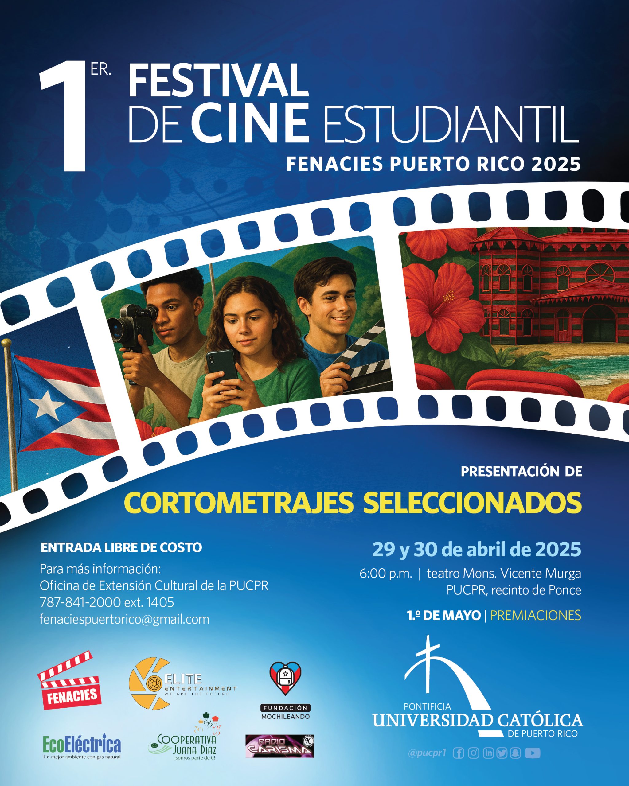 1er Festival de Cine Estudiantiles Fenacies PR 2025 By celimer_torres@pucpr.edu | April 14, 2025 ¡Ven a disfrutar la exhibición de cortometrajes producidos por niños y jóvenes! Posted in General ← Impulsando la ciencia sostenibleRegresa Artifice’s Nest →
