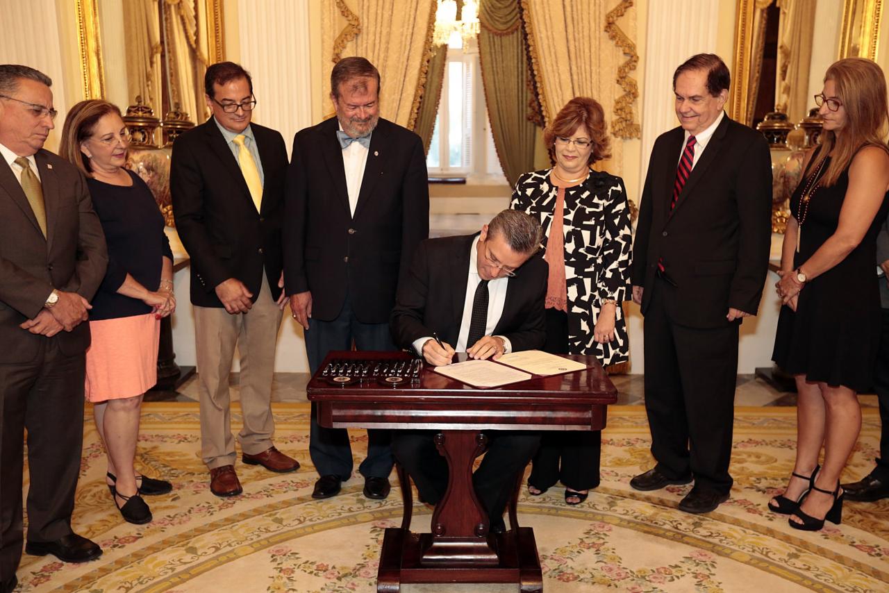 Durante la firma del Gobernador estuvieron presentes el presidente de la Pontificia Universidad Católica de Puerto Rico, Dr. Jorge Iván Vélez Arocho; el decano de Estudiantes de la Universidad Interamericana, Sr. Raúl Medina; la presidenta de la Universidad Central de Bayamón, Dra. Lilliam Negrón; el comisionado de deportes LAI, Lic. José E. Arrarás, entre otros funcionarios y académicos.