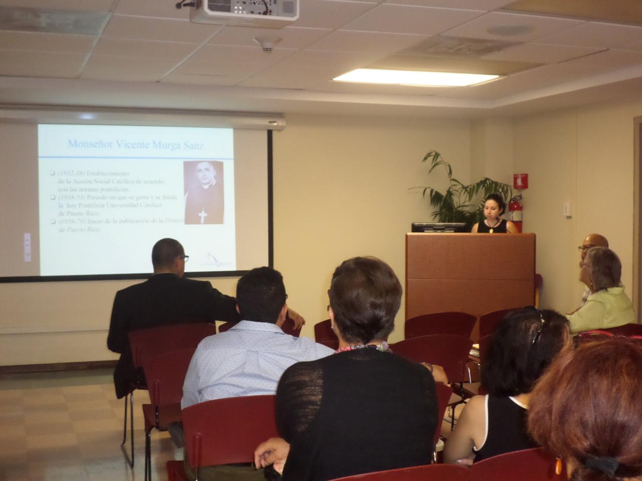 La ponencia de la profesora Báez se centró en dar a conocer el acervo histórico que resguarda la colección Murga, una de las colecciones más importantes sobre historia de Puerto Rico y un gran recurso de investigación para todo aquel que se especialice en historia puertorriqueña desde S. XVI a S. XX. “La colección Monseñor Vicente Murga es una de las colecciones más importantes en Puerto Rico en la que se documenta la historia de la Iglesia de nuestro país. La colección no solo contiene documentación relacionada con temas de Iglesia, también abarca gran parte de la historia de Puerto Rico en los siglos XVI a XIX, documentación que ha sido base para investigaciones y publicaciones de temas variados como lo son los huracanes en el Caribe, el oro en Puerto Rico, historia de los gobernadores de Puerto Rico, entre otros” manifestó Báez.
