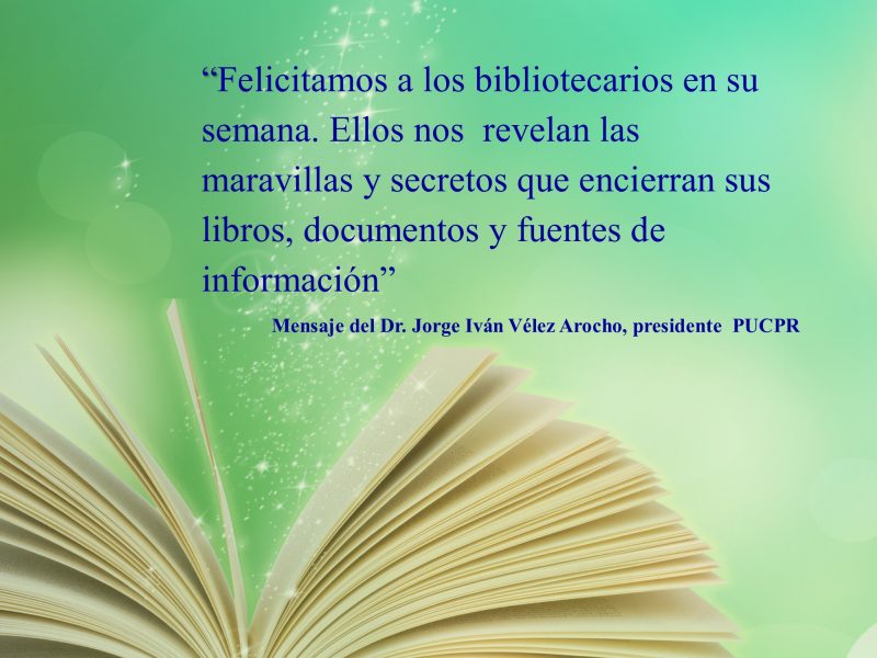 Mensaje del Presidente Semana de la Biblioteca By celimer_torres@pucpr.edu | April 5, 2017 Posted in General ← Ciencia emergente de la Biotecnología como eje de Simposio de Investigación CientíficaLa raíz de la Epigenética en la sociedad actual →