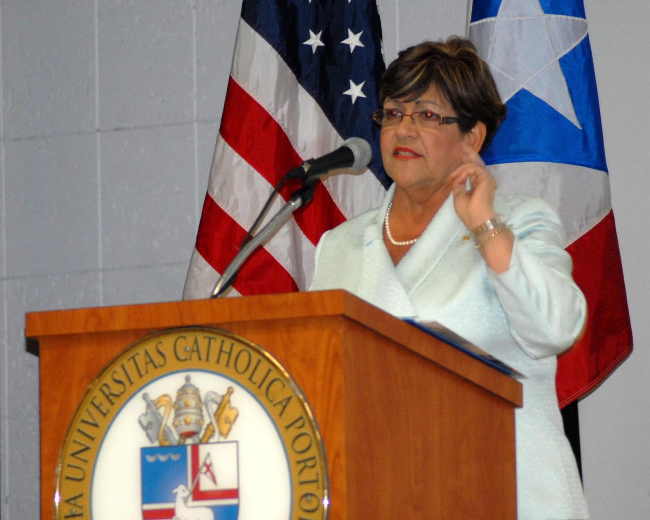 La Asociación de Estudiantes de Administración Pública de la Pontificia Universidad Católica de Puerto Rico (PUCPR) presentó el conversatorio “Desarrollo e Implementación de Política Pública del Municipio Autónomo de Ponce”, en el cual la alcaldesa de Ponce, María “Mayita” Meléndez Altieri, habló sobre la política pública y los próximos proyectos que tiene previstos para Ponce.  La actividad se llevó a cabo el 12 de abril de 2012 en el Anfiteatro Mons. Vicente Murga de la Institución.