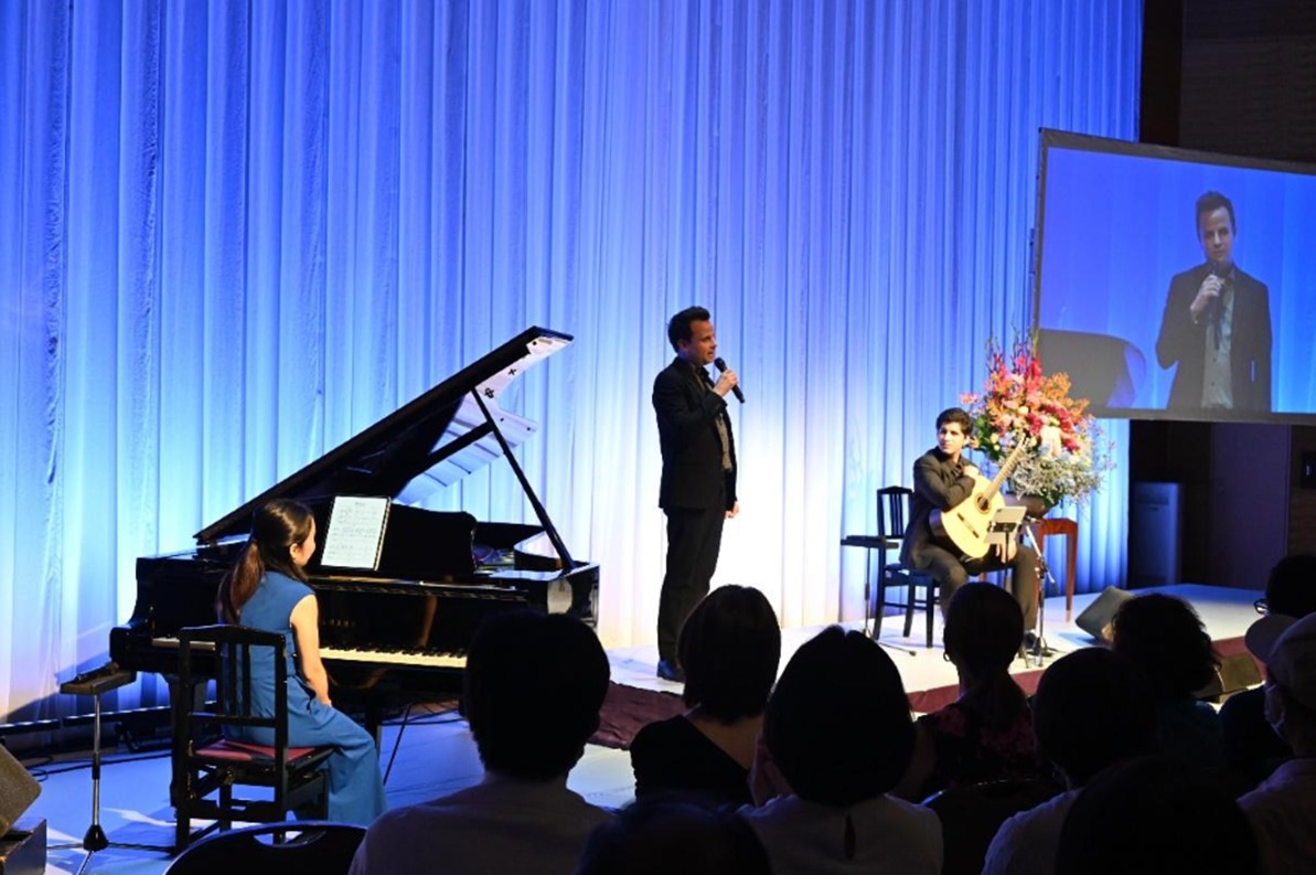 Además, el Dr. Escandón destacó que este recital fue posible “gracias al trabajo conjunto de muchas personas en el Centro de Estudios Latinoamericanos y del Departamento de Estudios de España y Latinoamérica de la Universidad Nanzan, al patrocinio de la Pontificia Universidad Católica de Puerto Rico y al notable esfuerzo de Hermelindo, quien supo sortear una parada de varias horas del servicio de Shinkansen, pudimos realizar el recital más estival que hemos tenido alguna vez”.