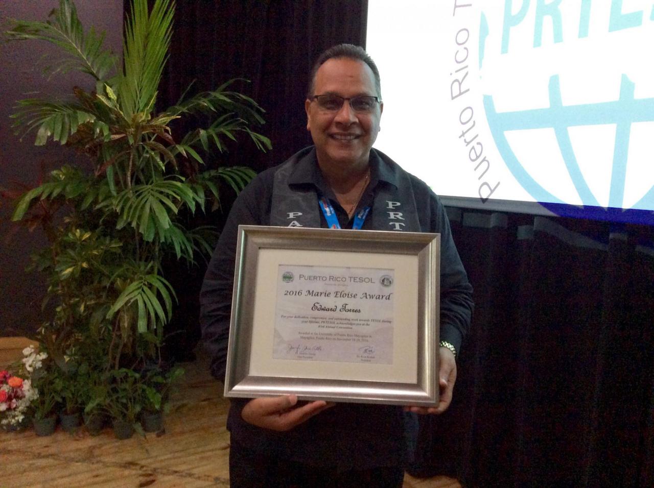 El Prof. Edward Torres, catedrático del Departamento de Inglés y Lenguas Extranjeras recibió recientemente el reconocimiento Marie Eloise Lifetime Achievement Award. Esta distinción se otorga a los educadores por su dedicación, compromiso y excelente desempeño en la enseñanza del inglés. Además, reconoce el impacto que como educador haya tenido en sus estudiantes en el proceso de enseñanza y aprendizaje del idioma.