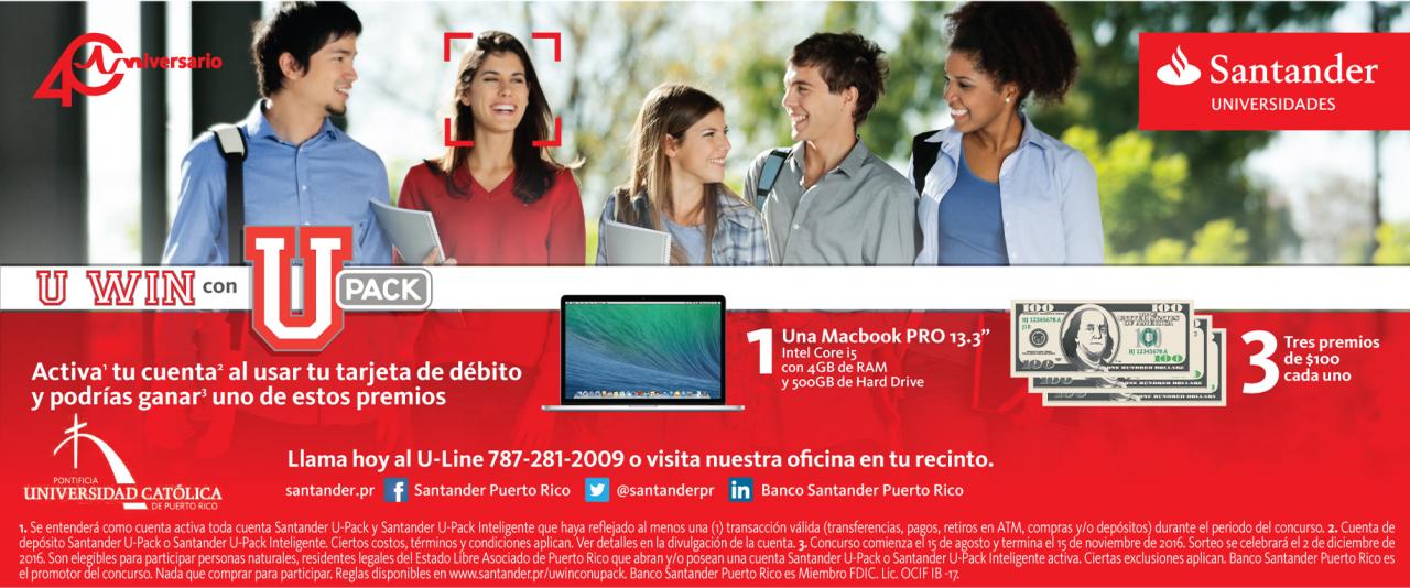 ¡Abre la cuenta U Pack hoy! By celimer_torres@pucpr.edu | September 29, 2016 Posted in General ← ¡A petición popular vuelve la obra Haciendo el bien sin mirar a quién!Raíces de la Misericordia →