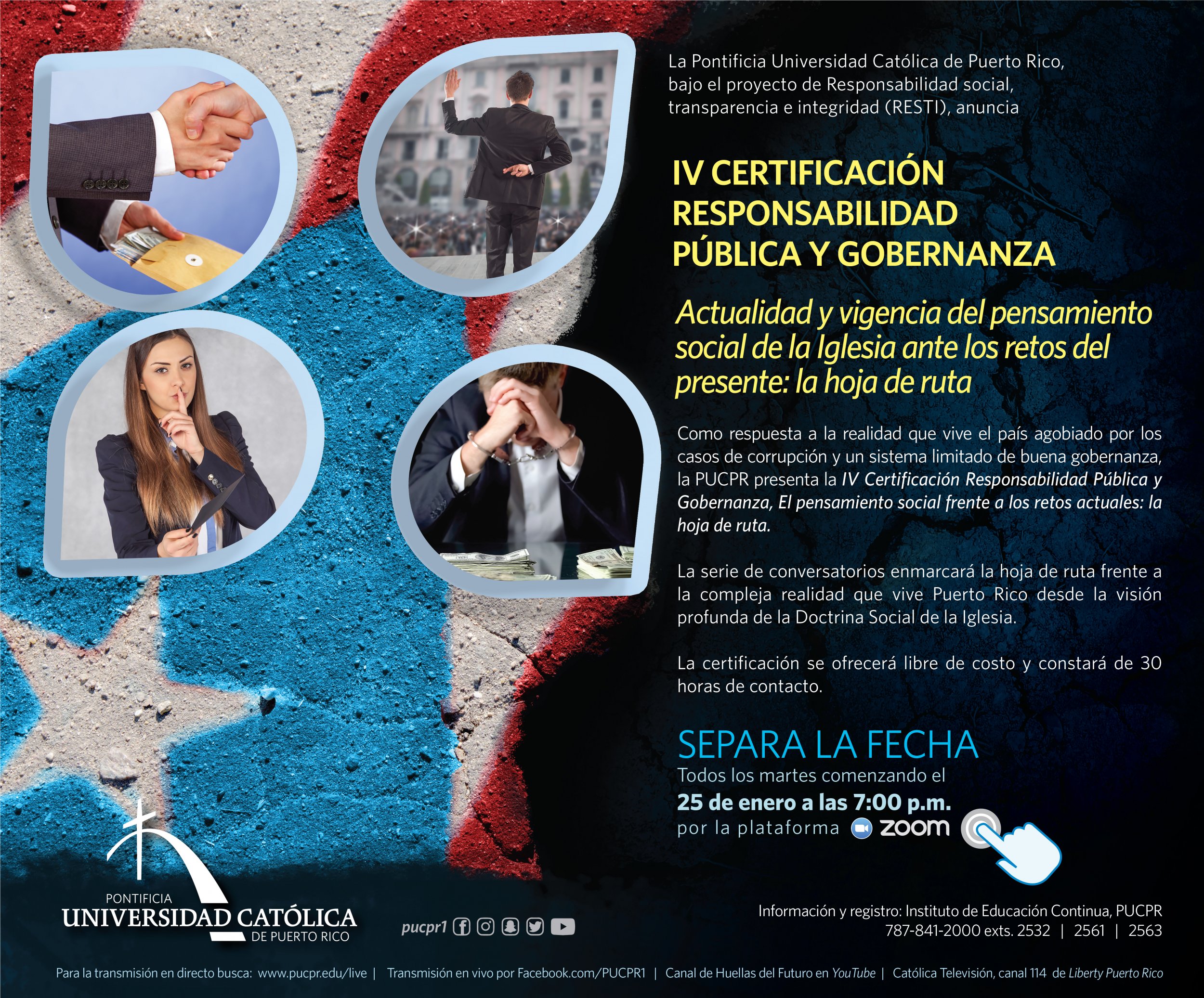 Actualidad y vigencia del pensamiento social de la Iglesia ante los retos del presente: la hoja de ruta By celimer_torres@pucpr.edu | December 22, 2021 En enero 2022 comienza la IV Certificación Responsabilidad Pública y Gobernanza Posted in General ← ¿Sabes qué son las almojábanas puertorriqueñas?Colegio de Educación de la PUCPR amplía su oferta →