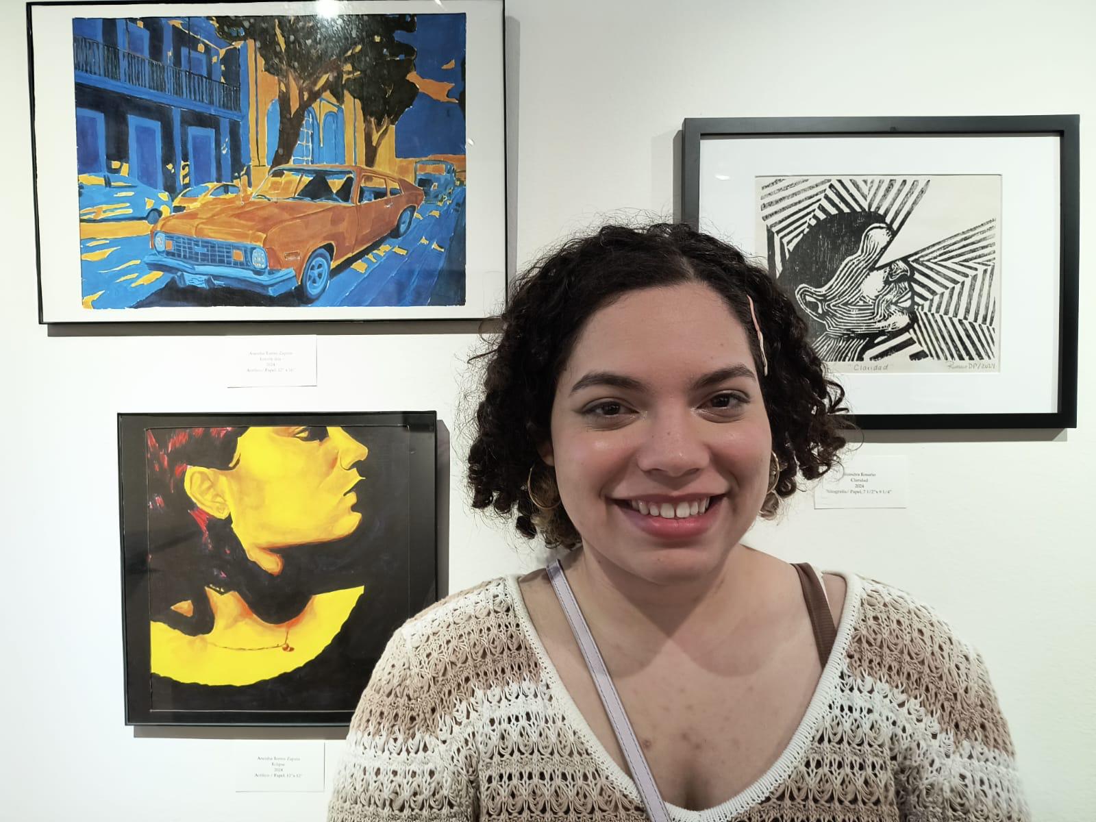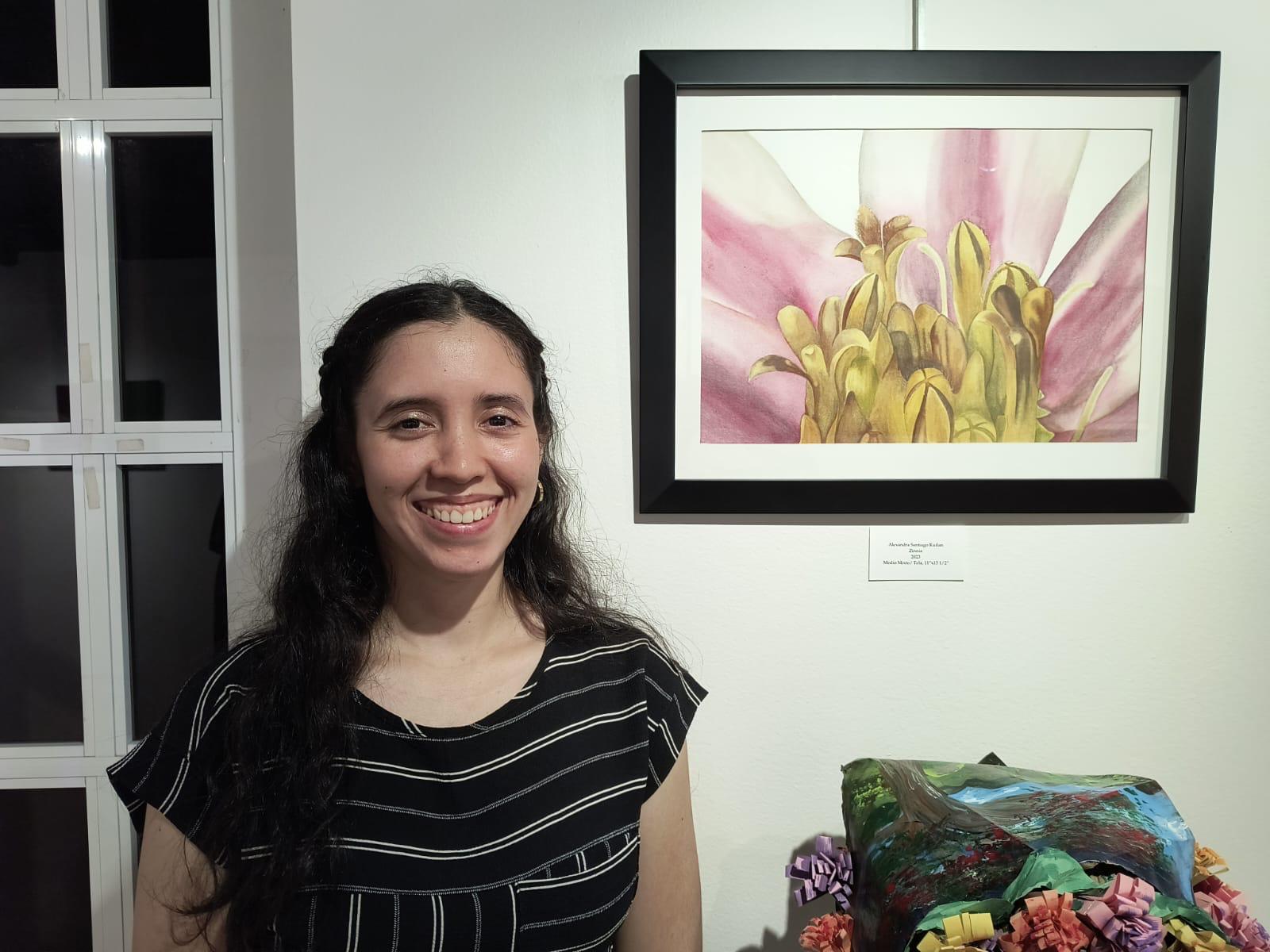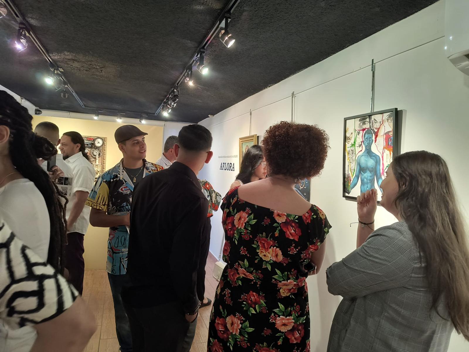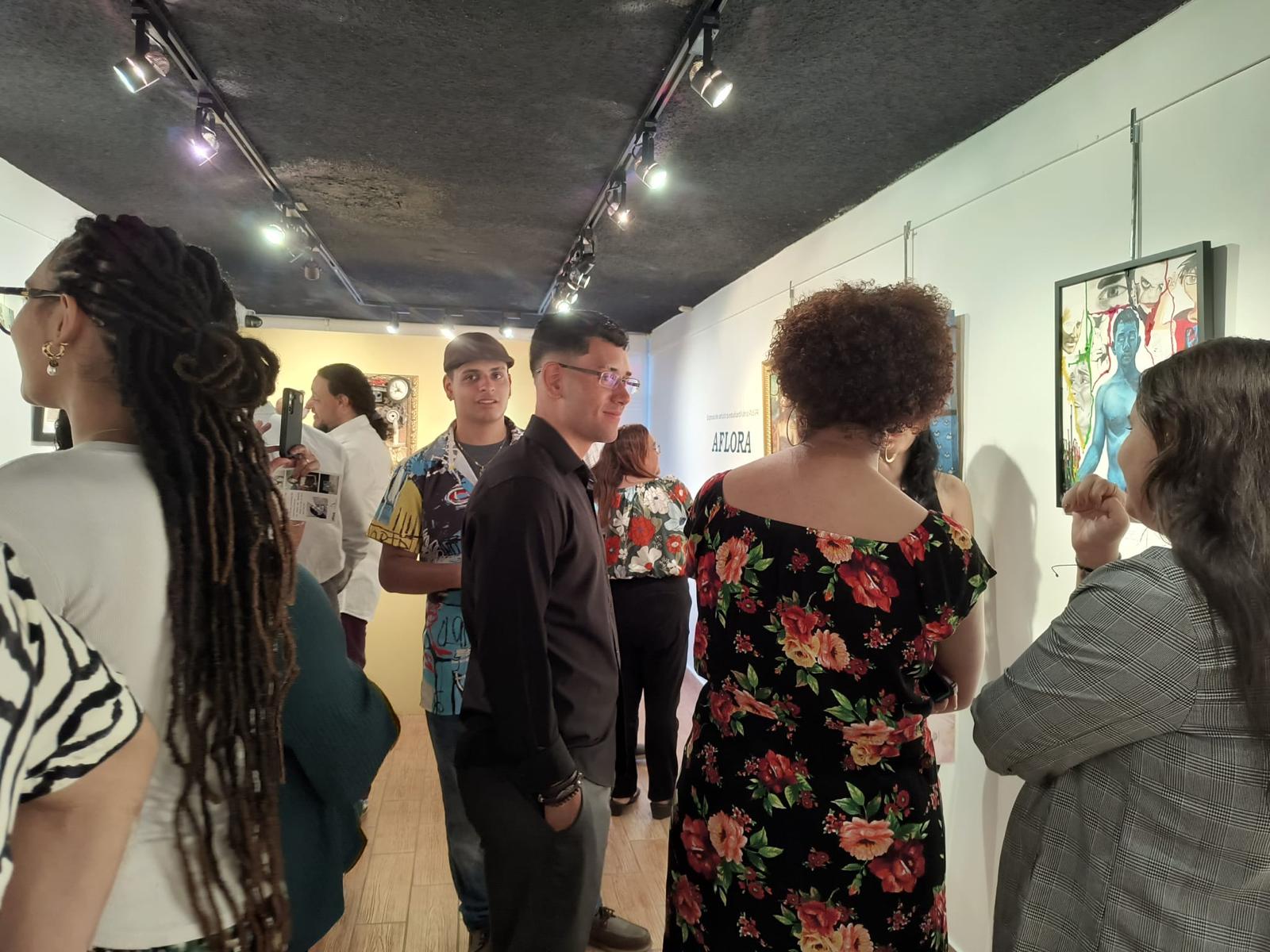 Aflora fue una exhibición que se decidió hacer por petición de la Asociación de Estudiantes de Artes Plásticas pues ellos interesaban tener una exhibición al final del semestre y el Sr. Félix Rivera, dueño de la Galería Trinitaria, puso a nuestra disposición el espacio para la exhibición. La selección de las obras se hizo por un jurado compuesto por los profesores nuestros Maricel Surillo, Beverly Zapata y José Sanabria. Los estudiantes sometieron portafolio y esas fueron las obras que se escogieron. La exhibición se tituló Aflora porque es una colectiva de estudiantes de los programas de Bellas Artes del bachillerato, del programa combinado y de la Maestría en Artes con especialidad en Pintura y Dibujo. Aunque la inmensa mayoría son estudiantes están comenzando o están en su segundo o tercer año” explicó la profesora y artista plástica Sylvia Damary Burgos.