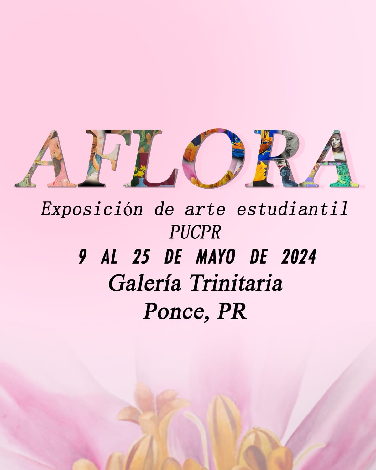 La Galería Trinitaria en Ponce se engalanó con la exhibición Aflora compuesta de piezas pintadas por los estudiantes de Bellas Artes de la Pontificia Universidad Católica de Puerto Rico.  Alrededor de 13 estudiantes de bachillerato y maestría expusieron su arte.