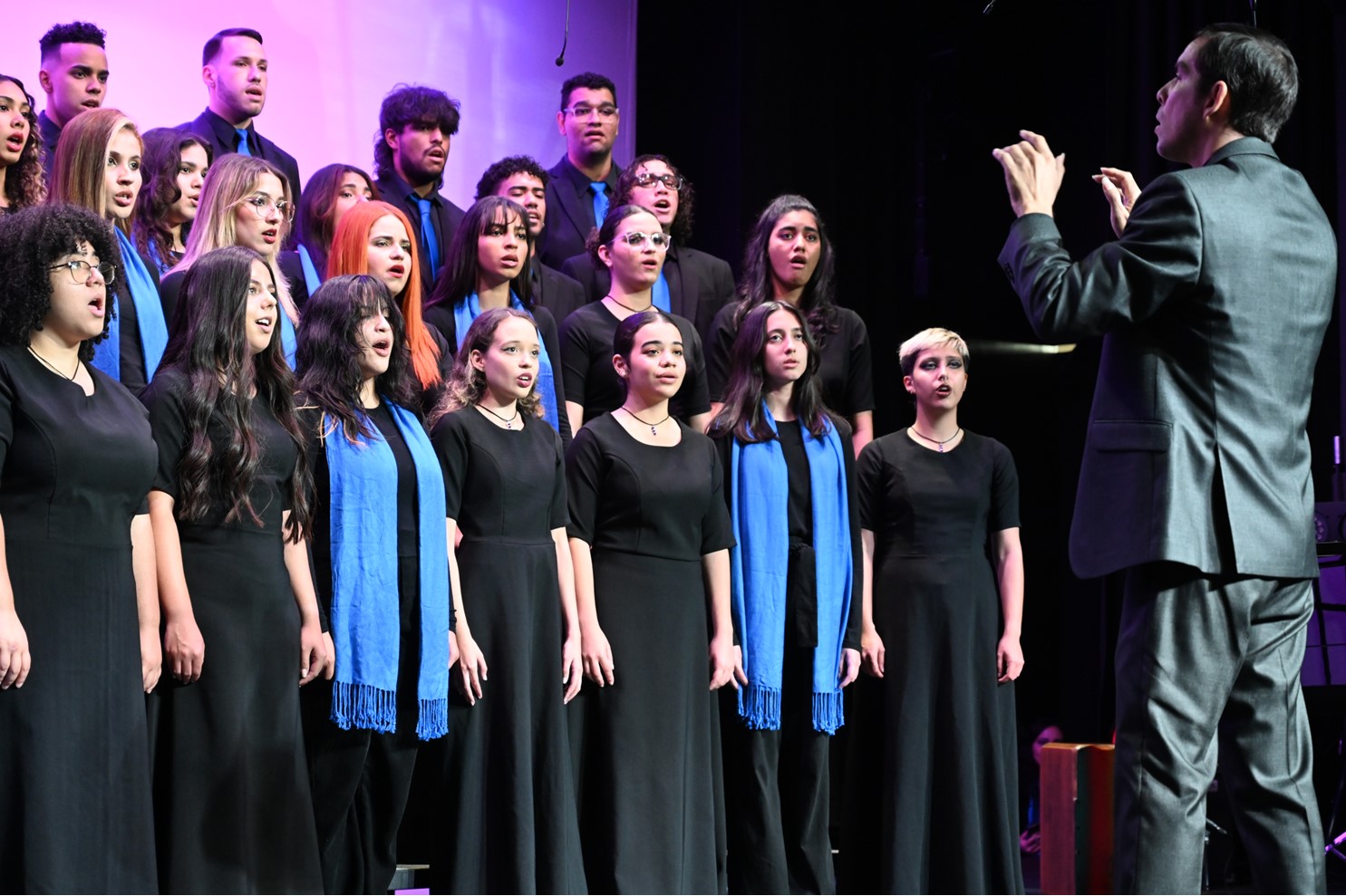 El teatro Mons. Vicente Murga fue escenario para la hermosa presentación del Coro de la PUCPR en su Concierto de Otoño. La presentación fue un viaje musical entre la música sacra y la música popular latinoamericana con un tono de celebración de la Navidad y la Epifanía del Señor. Así lo describió el Dr. Hugo Adames, director del Coro.