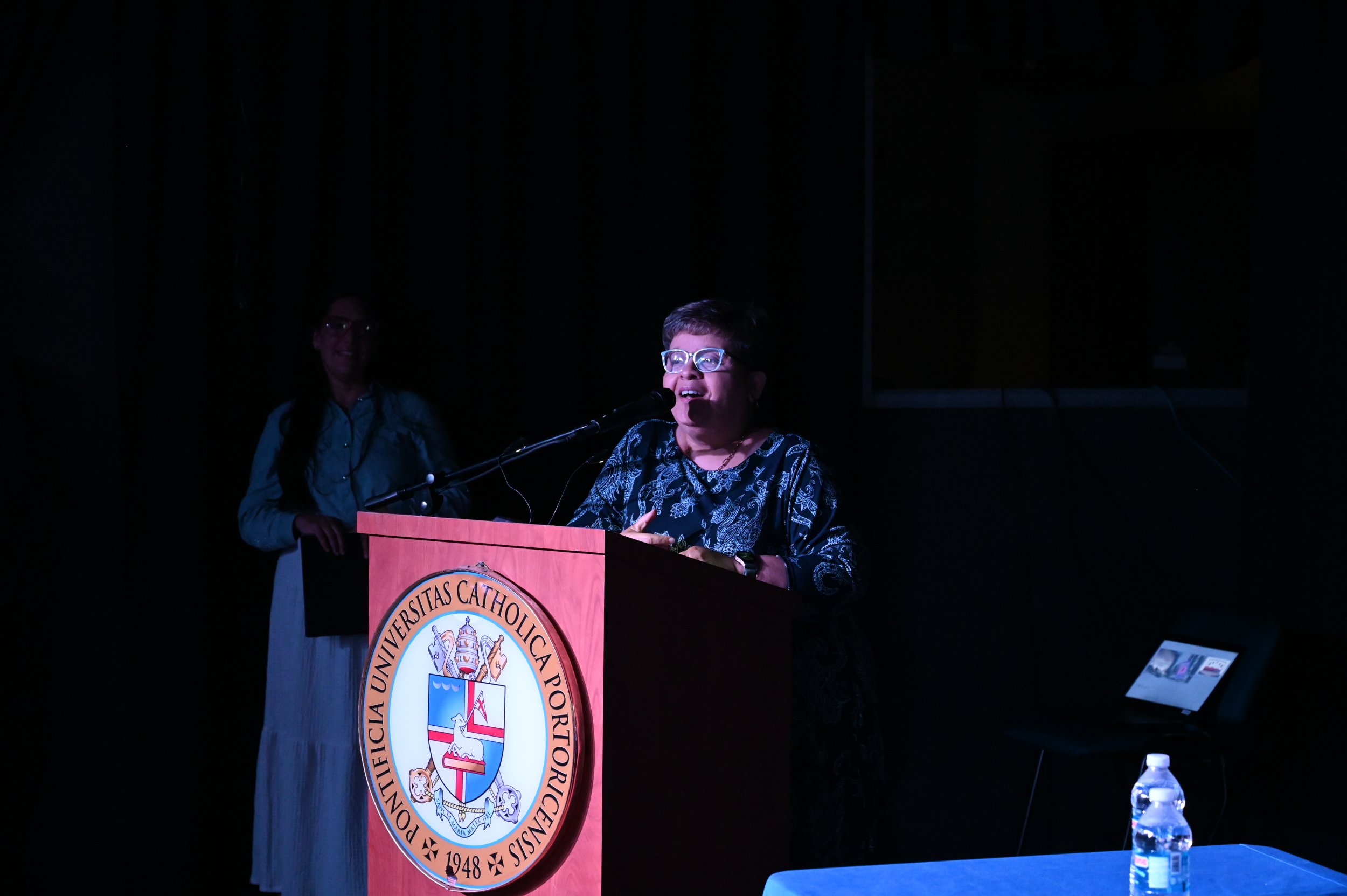 “Este encuentro fue muy importante porque marca una parte esencial de lo que es la historia del teatro universitario y porque es muy significativo que este montaje en el 1997 en el majestuoso Teatro La Perla de Ponce diera pie para que la Universidad entendiera que necesitábamos un escenario donde se realizaran producciones como lo fue Ana Frank: Terror y Esperanza bajo la dirección de Edilberto Torres Santos, música de Rubén Colón Tarrats unido al Coro de la PUCPR. Y como parte de la celebración de los 10 años del teatro Mons. Vicente Murga quisimos traer esta obra después de 29 años. para conmemorar ese gran momento” explicó Rosita Archevald Zayas, directora de la Oficina de Extensión Cultural.