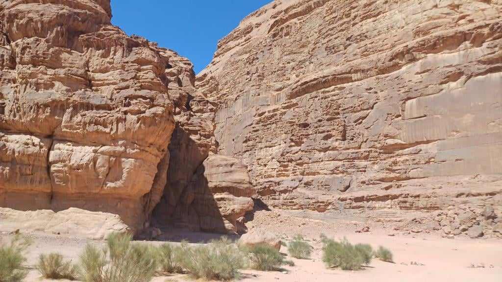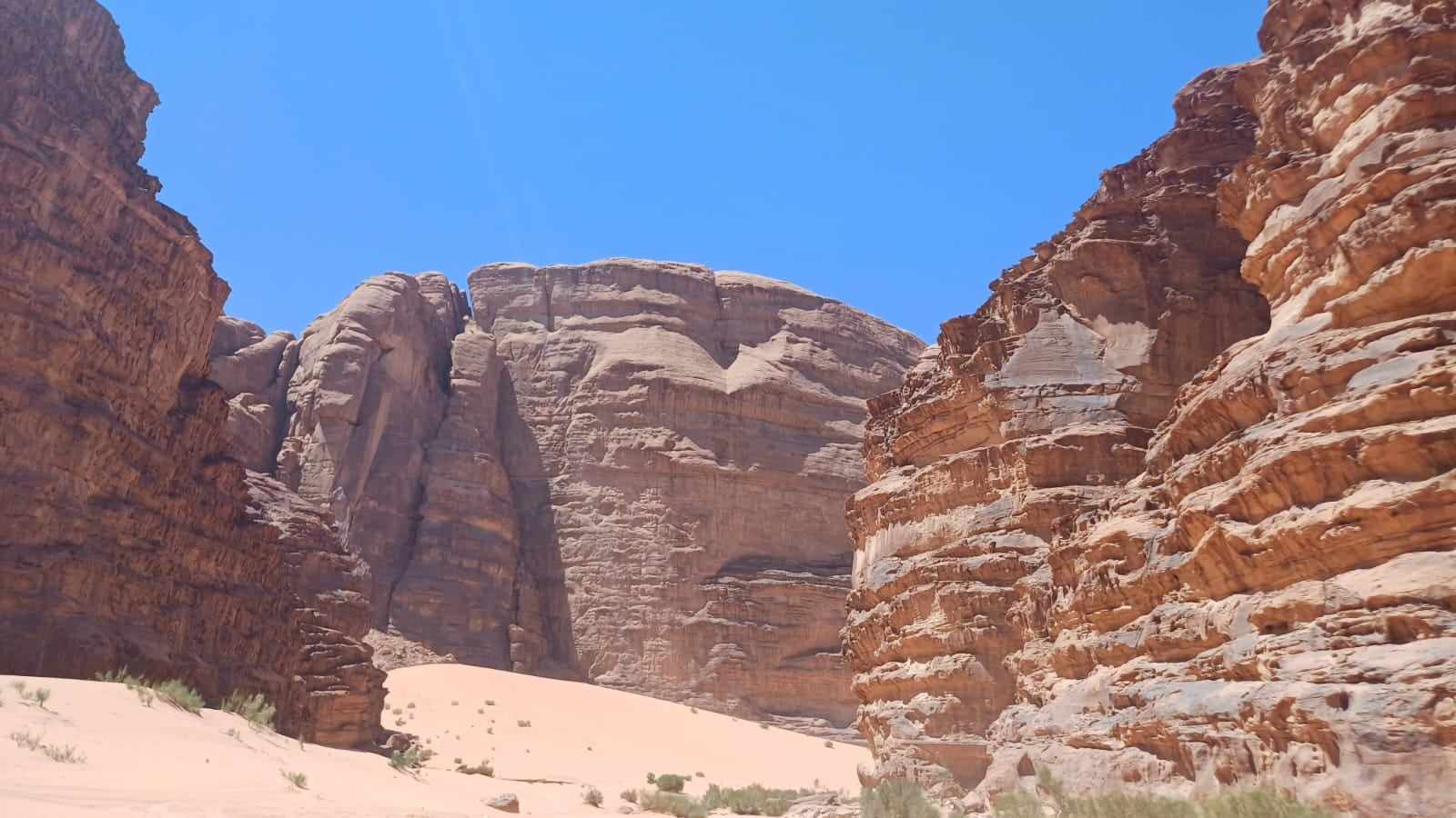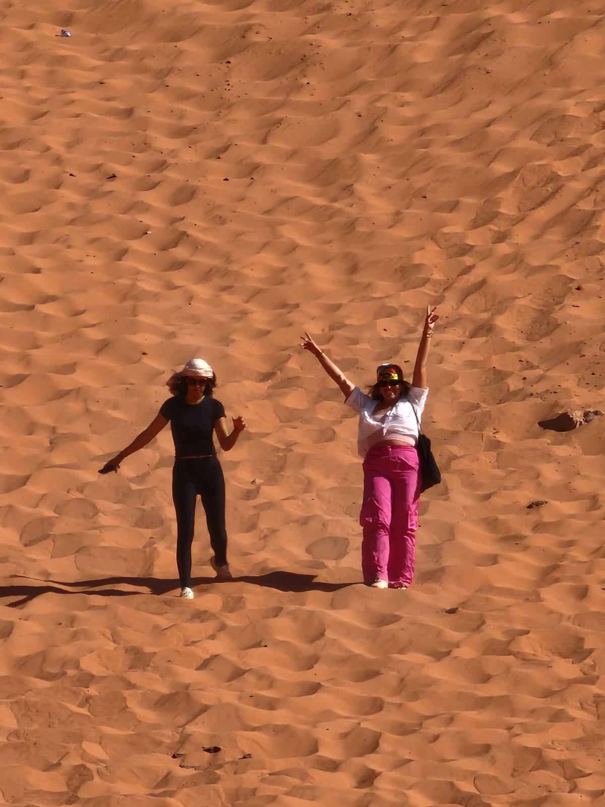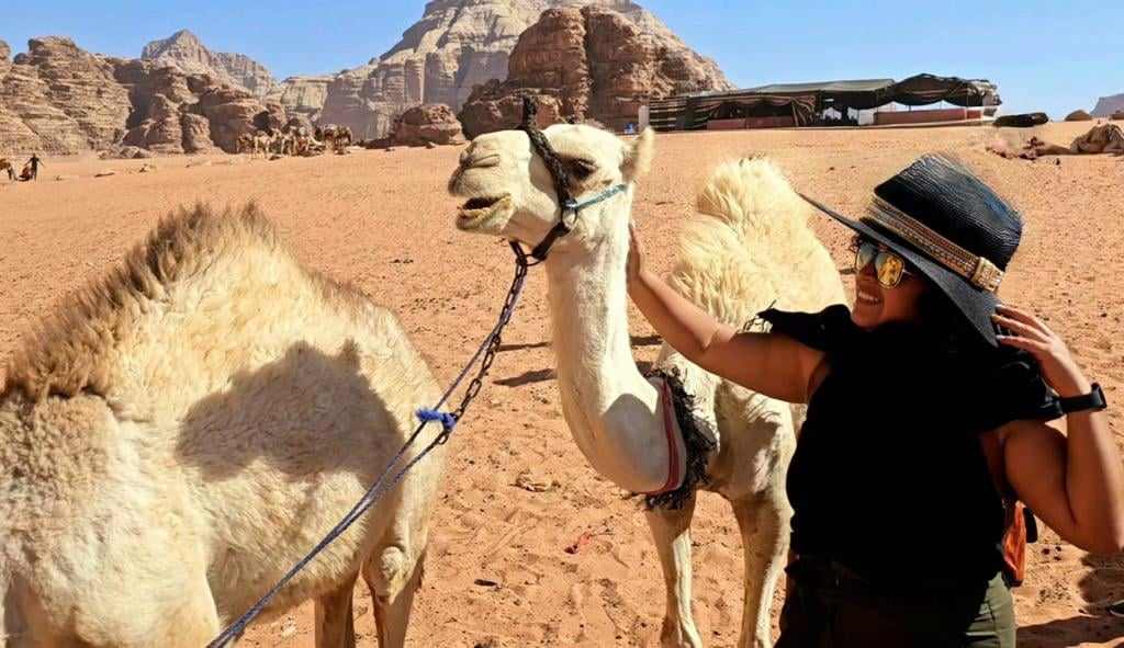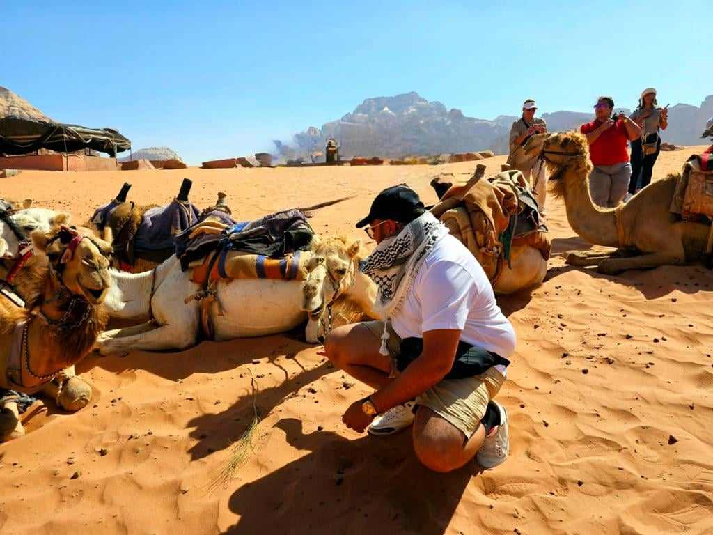 Fue así como llegaron a un espacio nuevo para todos: el desierto. Un escenario de arena, seco,  intenso sol y enfiladas montañas de piedra arenisca sorprendió al grupo. Allí disfrutaron de una excursión 4 X 4, en una sorprendente aventura y almorzaron con los habitantes locales, los beduinos que vivían en su campamento.  Se enamoraron de los dromedarios o camellos  y le siguieron los pasos a la huella de la historia de los nabateos, tribu que se conoce por la evolución de la construcción en piedras y petroglifos.