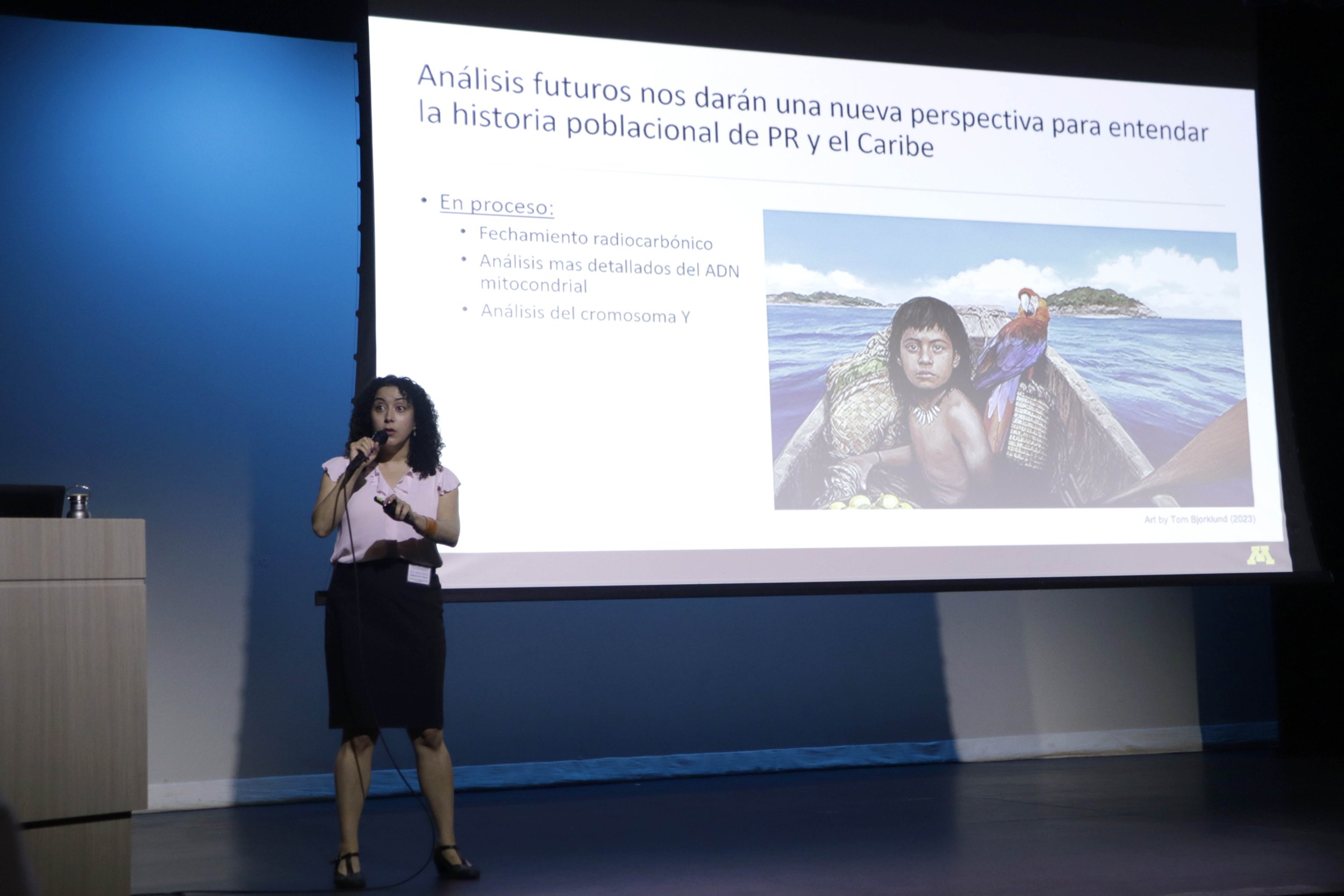 “Celebramos la edición número 22 del Simposio de Investigación Científica presentado por el Centro de Investigación Científica Padre Tosello y el Colegio de Ciencias. Tuvimos una plenaria a cargo de la Dra. María Nieves Colón, profesora de la Universidad de Minnesota y directora de un laboratorio de antropología genética. Así que ella básicamente estuvo dándonos una charla sobre lo que era el DNA antiguo de las islas del Caribe y cómo se han podido contestar diferentes preguntas de la historia utilizando el DNA de huesos que ella podía recuperar de algunos asentamientos como por ejemplo el Centro Ceremonial Indígena de Tíbes o la Cueva del Indio. Y así en diferentes lugares de Puerto Rico. También ella tiene colaboradores en otras partes de las islas y en Sur América” indicó la Dra. Ceidy Torres, catedrática y presidenta del Comité Organizador del Simposio.