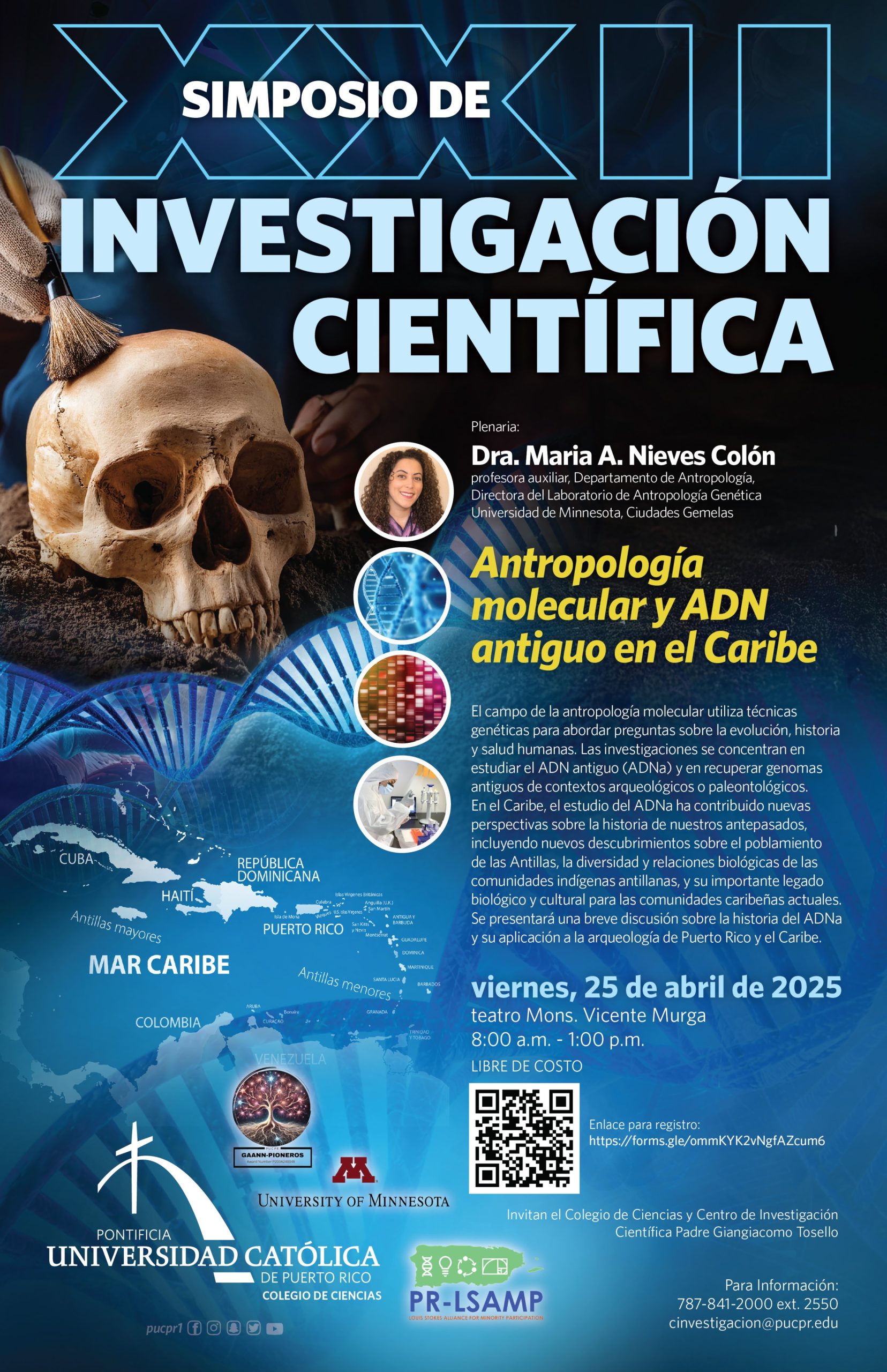 Antropología molecular y ADN antiguo en el Caribe By celimer_torres@pucpr.edu | March 20, 2025 El Colegio de Ciencias celebra el XXII Simposio de Investigación Científica Posted in General ← En la cruz está nuestra esperanza y la esperanza no defraudaEncuentro poético internacional →
