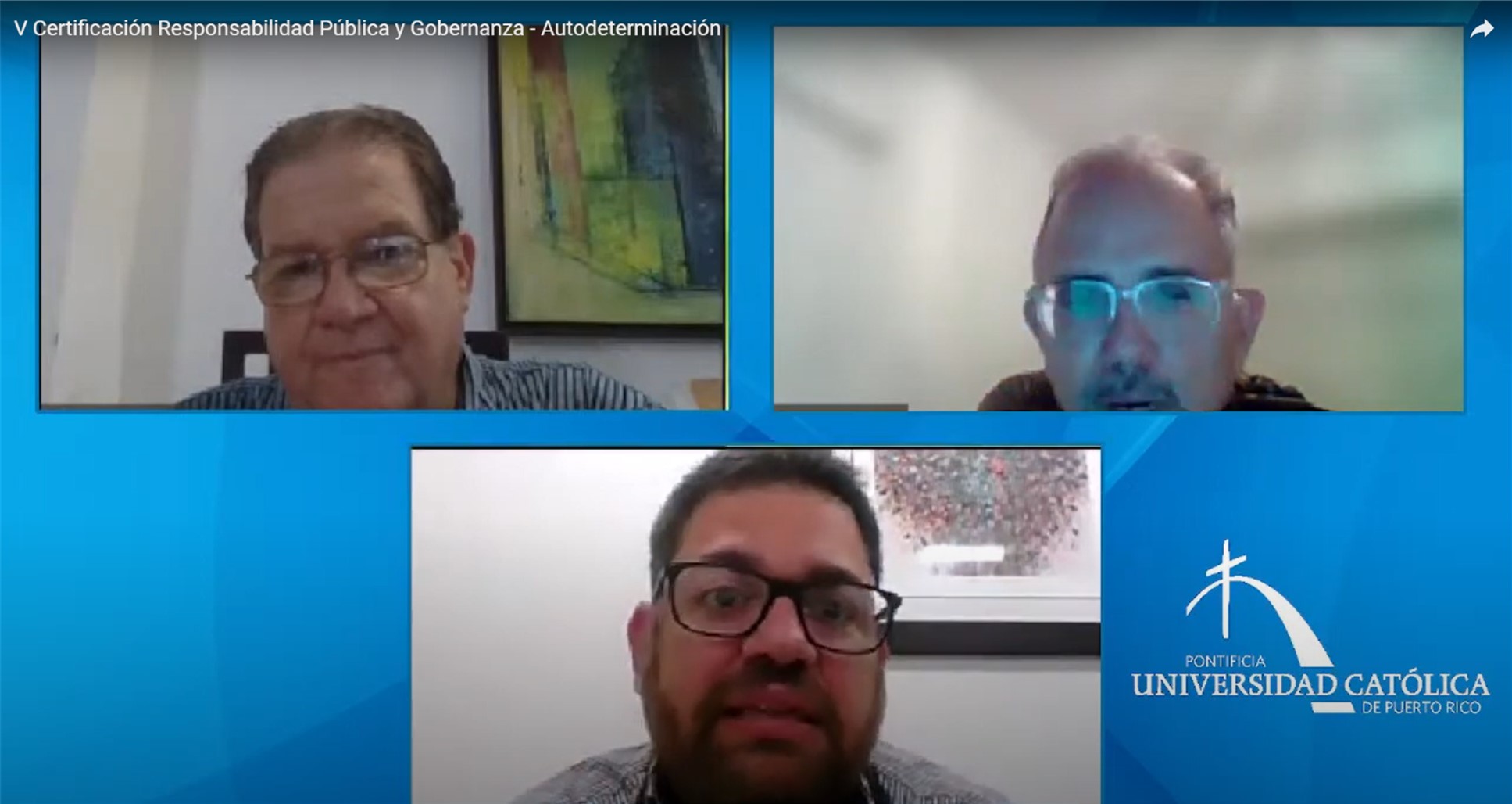 El conversatorio contó con la participación como ponentes del Dr. José Colón Morera, el Lcdo. José A. Frontera Agenjo y del Lcdo. Víctor García San Inocencio como moderador.