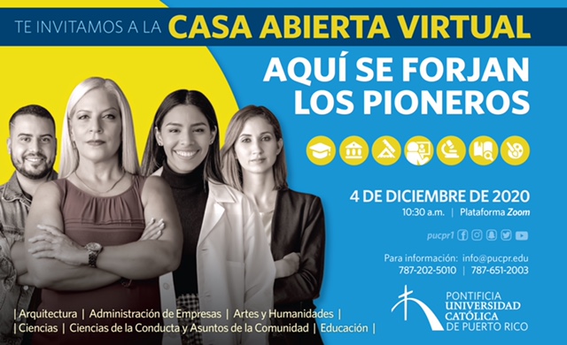 ¡Buscamos Pioneros! By celimer_torres@pucpr.edu | November 18, 2020 Estudiante Senior, participa del Tour Casa Abierta Pionera y conoce nuestra oferta académica. Posted in General ← Damos gracias porque eres parte de La CatólicaAnálisis desapasionado del proceso electoral →