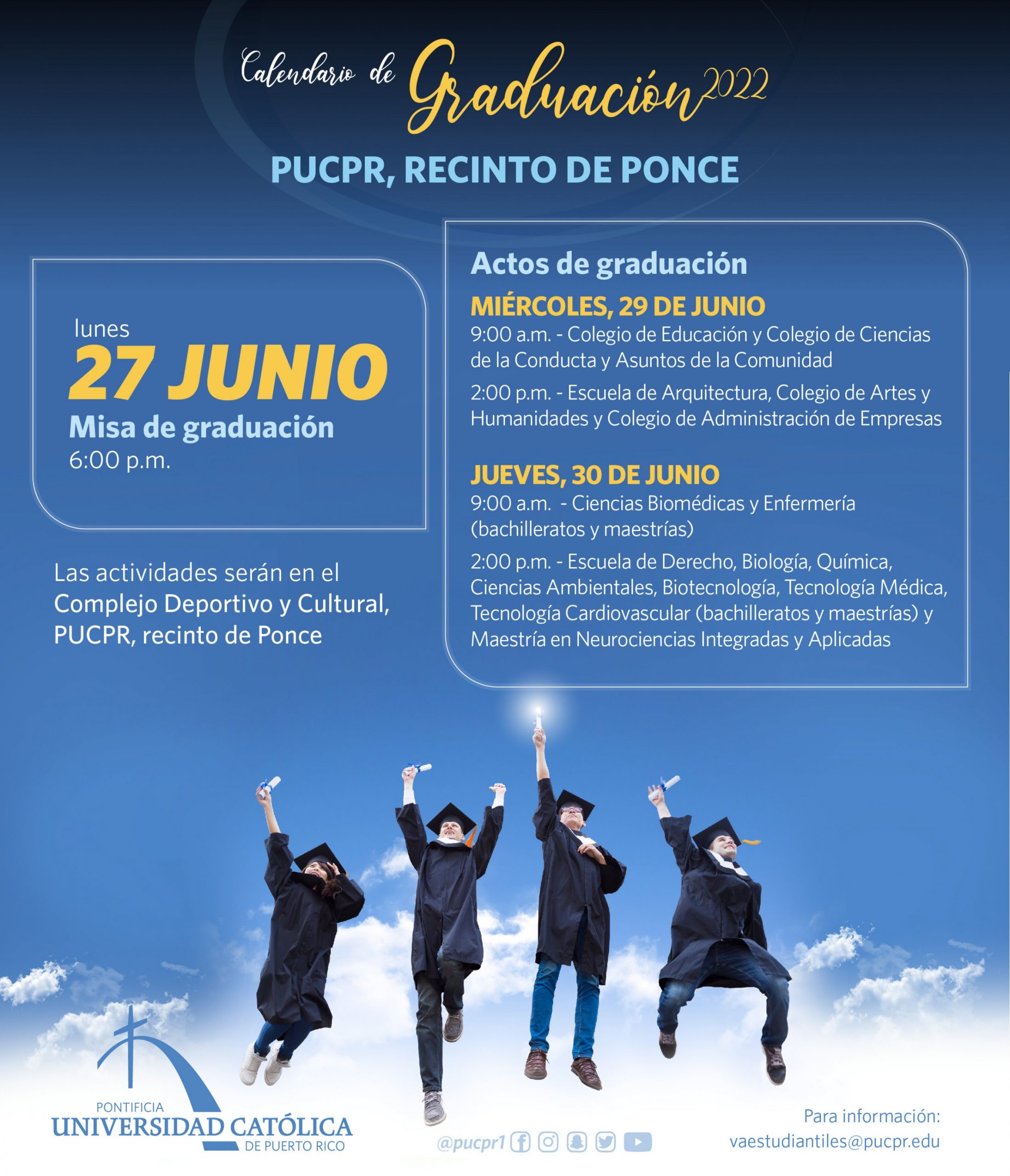 Calendario de Graduación 2022 By celimer_torres@pucpr.edu | June 17, 2022 ¡Listos los Pioneros del recinto de Ponce! Posted in General ← Pionero, ¿tocas algún instrumento?Graduandos de Mayagüez, ¿están listos? →