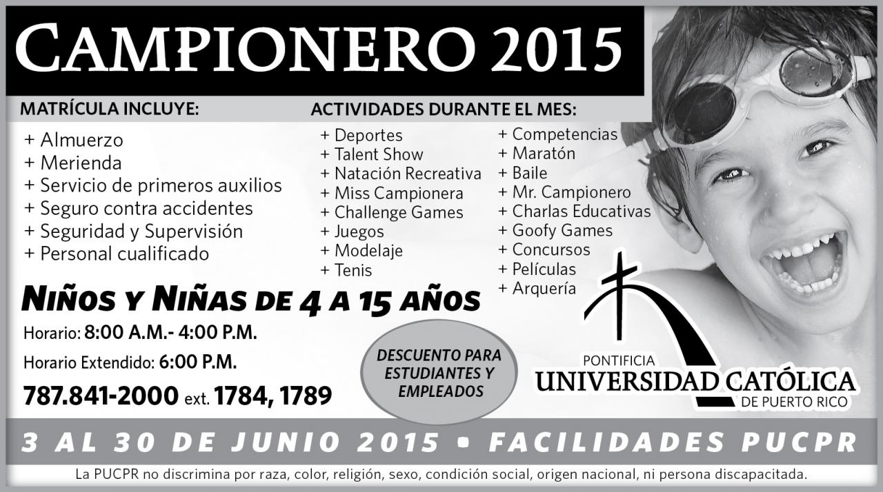 Campionero 2015 By celimer_torres@pucpr.edu | May 8, 2015 Posted in General ← Elegance Renouvelée….desfile de modas y noche de logros 2015Brilla proyecto de estudiante Pionera en Suiza →
