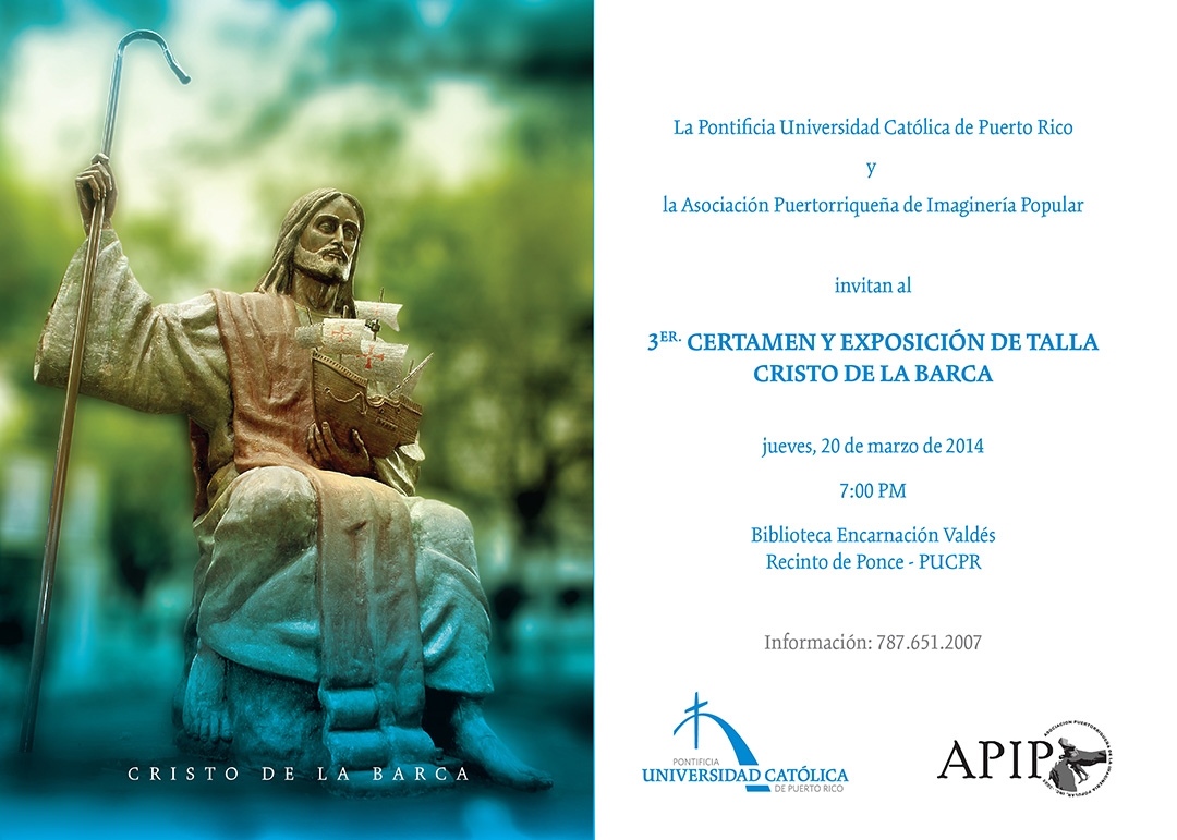 Certamen y exposición talla del Cristo de la Barca By celimer_torres@pucpr.edu | March 7, 2014 Posted in General ← Día de los Funcionarios de las Oficinas de Registraduría y de AdmisionesLa mujer empresaria ante los retos del siglo XXI →