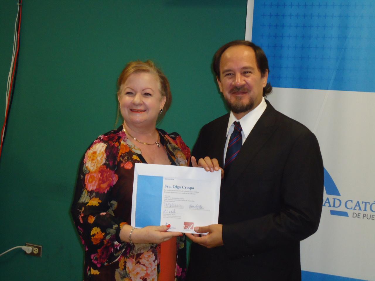 El Dr. Hernán A. Vera Rodríguez, decano del Colegio de Estudios Graduados en Ciencias de la Conducta y Asuntos de la Comunidad de la PUCPR entregó los certificados.