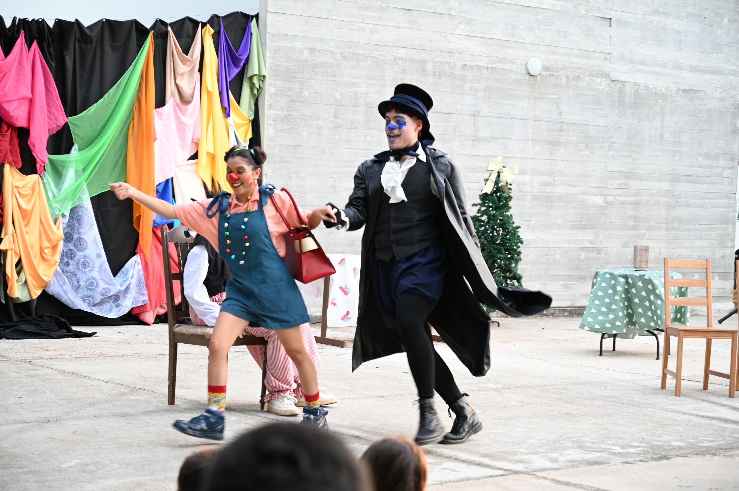 “Clowntástico integra la técnica de Clown en el montaje, que es una técnica en la cual los actores buscan reconciliarse con su infancia, con el juego y desarrollan esa sensibilidad. Depende mayormente de la expresión corporal. Así que estamos entrenando a nuestros actores en diversas técnicas y por eso buscamos montajes variados para explorar diversos géneros teatrales. Hoy han tenido que recurrir a su expresión y también a su creatividad”, expresó la profesora de Artes Escénicas, profesora Lauryliz González.