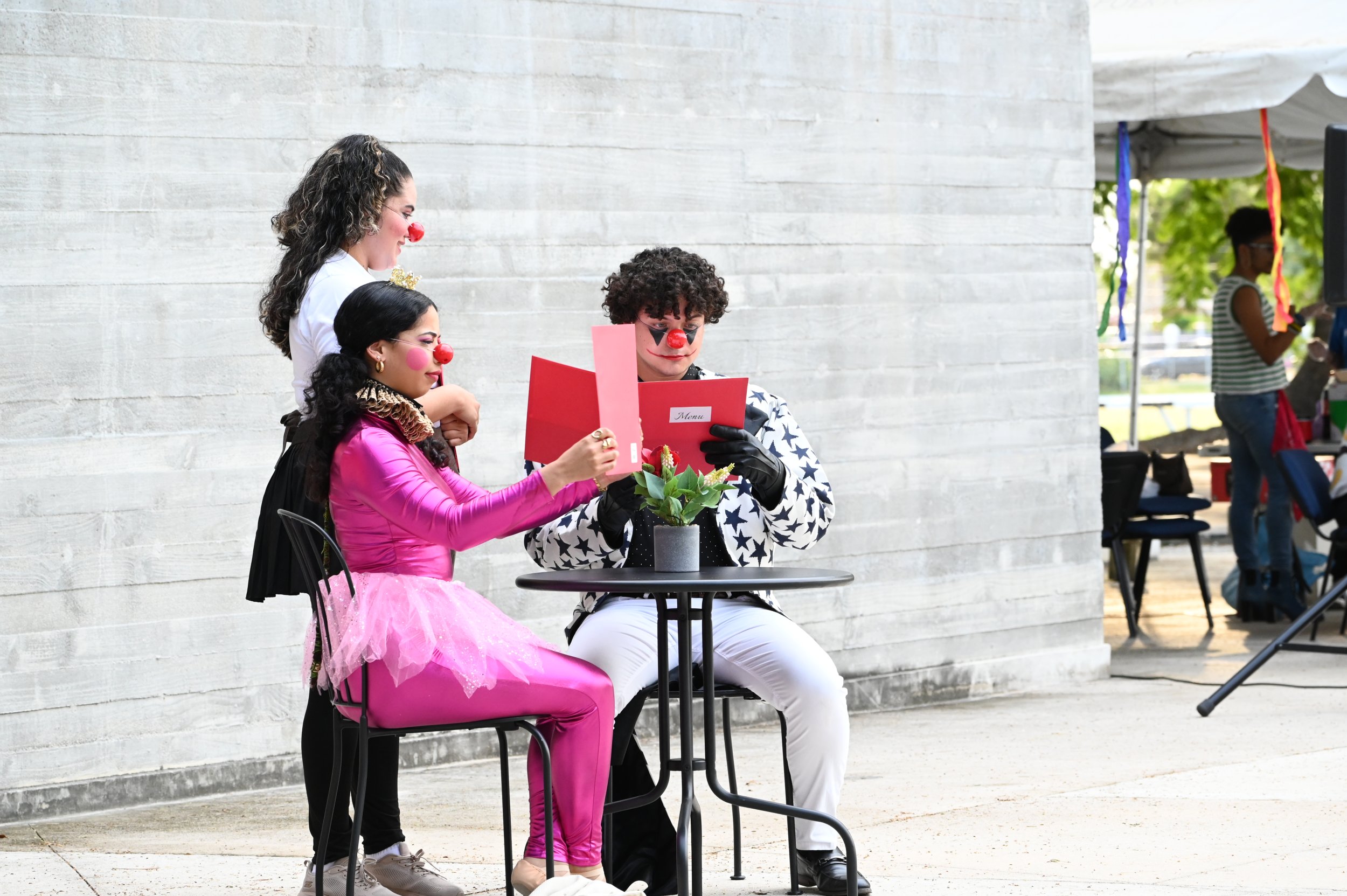 La espontaneidad, la creatividad y la risa en su máxima expresión contagiaron a todos en la plaza exterior de la Sala de Teatro Experimental del recinto de Ponce. Catorce estudiantes del curso Montaje Teatral se las ingeniaron para hacer reír a chicos y grandes en un espectáculo único nacido del juego y la poesía del clown.