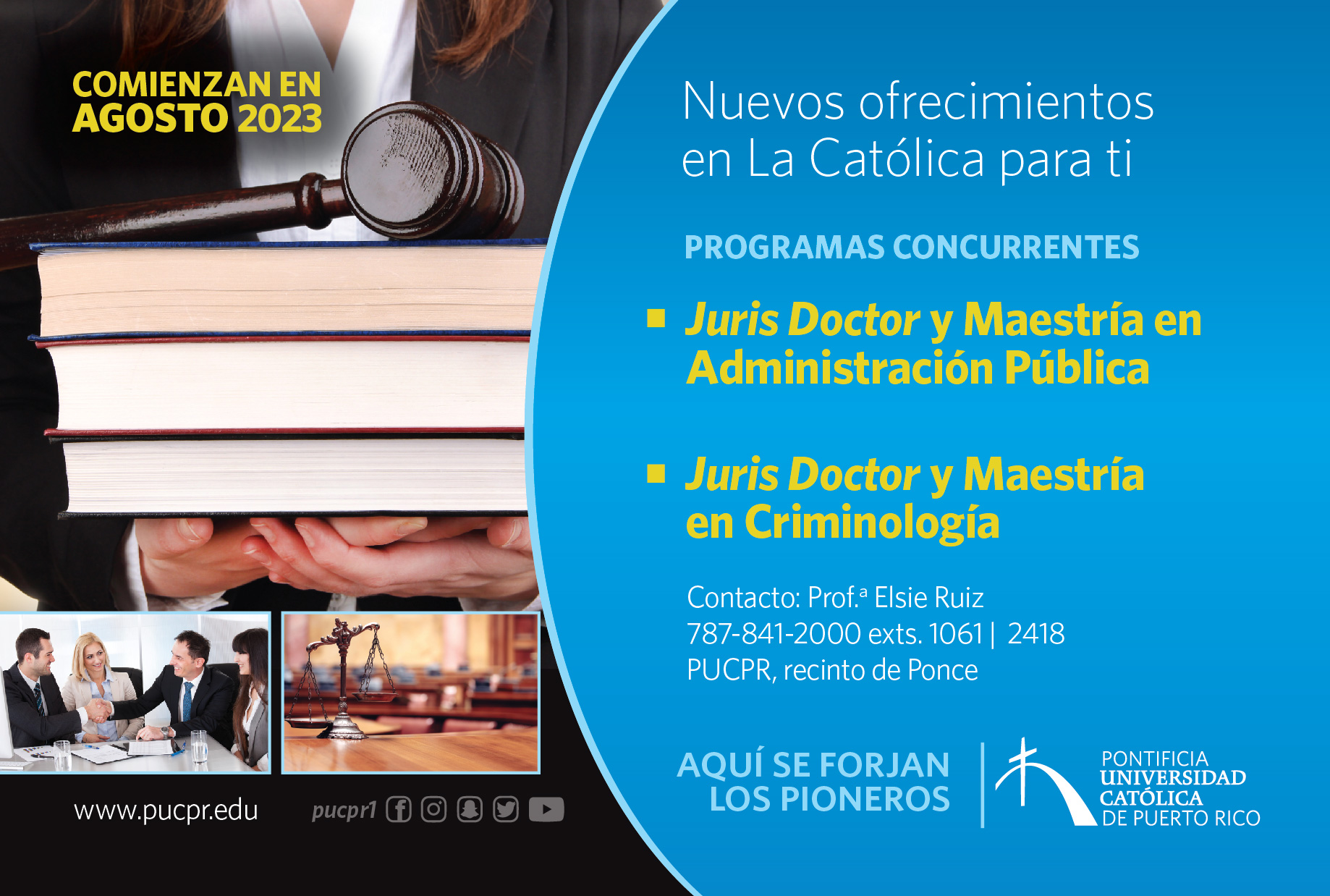 Combina estudios graduados en Criminología o Administración Pública con Derecho By celimer_torres@pucpr.edu | May 24, 2023 El novedoso ofrecimiento comienza en agosto 2023 Posted in General ← La Universidad como espacio de experiencia profesional para los estudiantes¡Revive los mejores momentos de abril! →