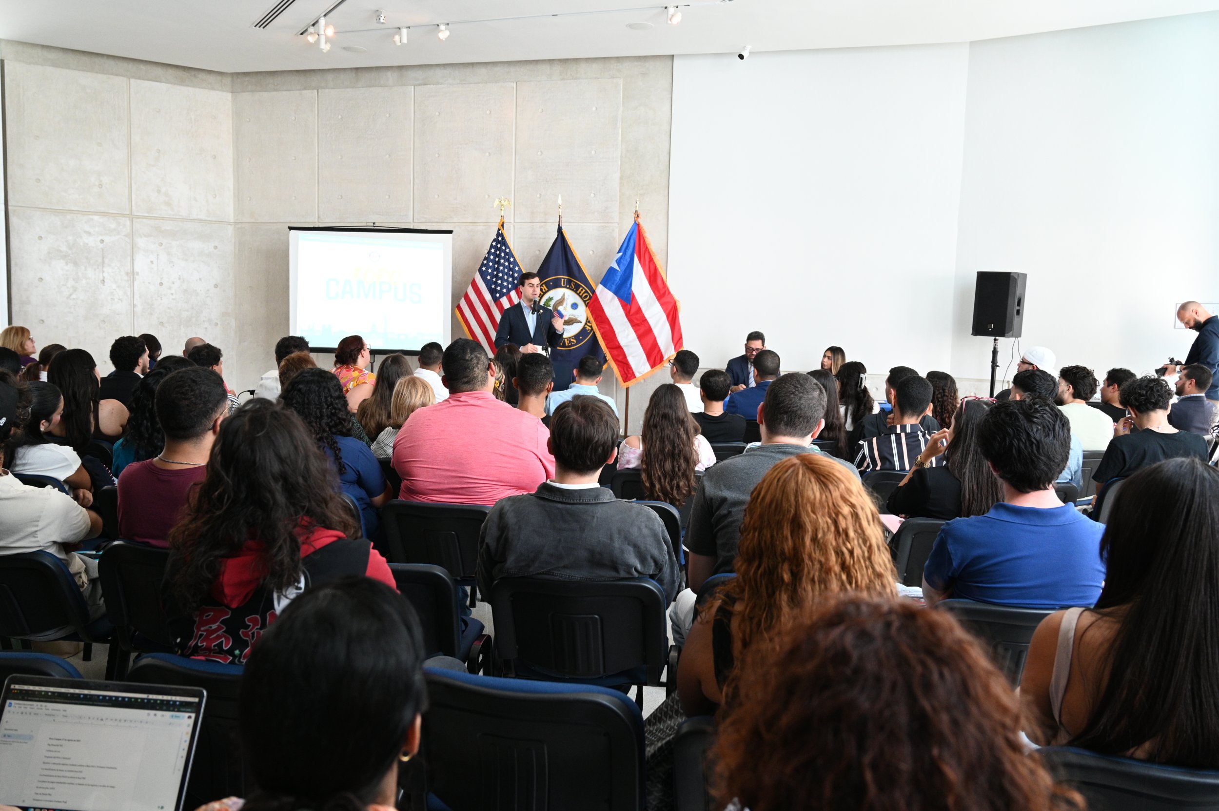 Durante el conversatorio, el comisionado ofreció un mensaje, respondió preguntas de estudiantes y abordó, de forma directa, las consecuencias de la nueva ley federal, conocida como el “Big Beautiful Bill”, sobre la educación superior en la Isla.