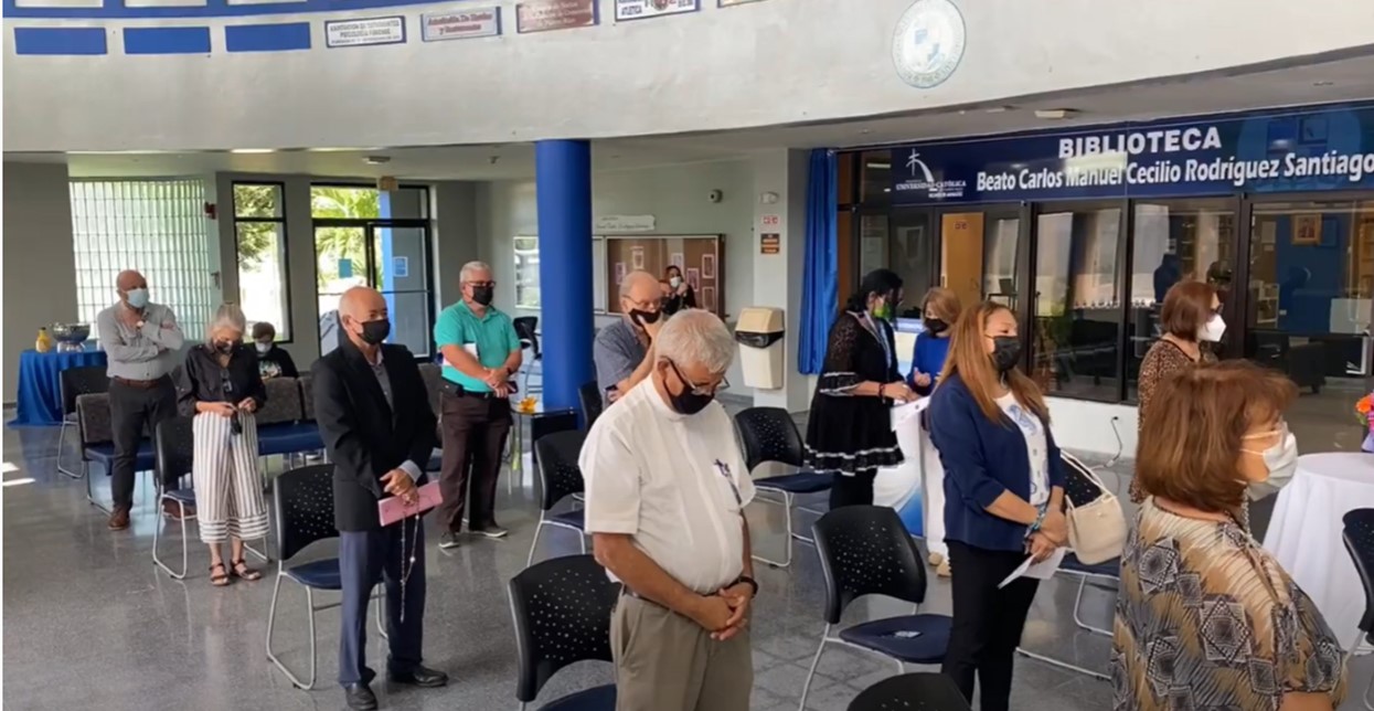 Al comienzo de octubre, Mes del Rosario, el papa Francisco invitó a renovar el “compromiso de rezar el Santo Rosario”. El sumo pontífice ha expresado que “el rosario es la oración que acompaña siempre mi vida”. Cumpliendo con esta celebración, cada semana durante el mes de octubre, todos los colegios de la Pontificia Universidad Católica de Puerto Rico, recinto de Mayagüez, han llevado a cabo el rezo del rosario en el vestíbulo del edificio principal donde estudiantes, facultativos y personal administrativo han participado del mismo.