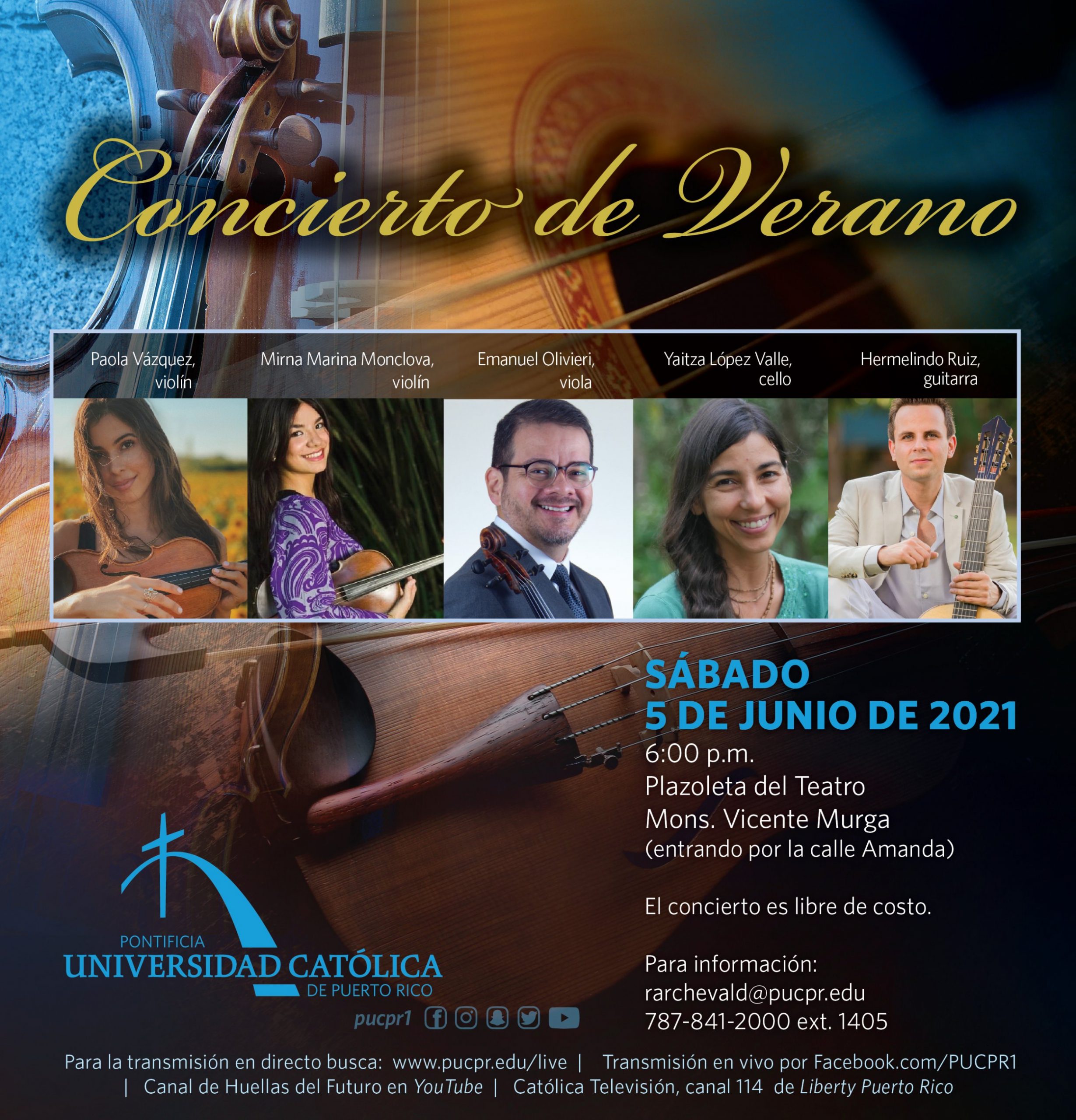 Puedes disfrutar del concierto de forma presencial o  virtual a través de www.pucpr.edu/live