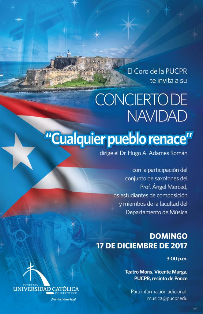 Concierto del Coro de la PUCPR “Cualquier Pueblo Renace” By celimer_torres@pucpr.edu | November 30, 2017 Posted in General ← Conversatorio Una mirada integral al adulto mayor en tiempos de catástrofeTryouts Equipo de Porrismo →