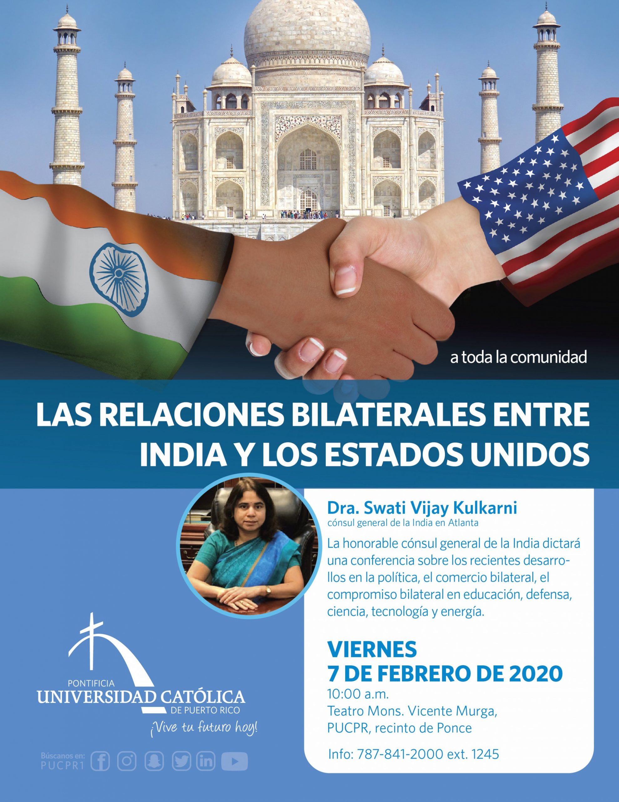 Cónsul general de India dictará conferencia en La Católica By celimer_torres@pucpr.edu | February 3, 2020 Las relaciones bilaterales entre India y los Estados Unidos será el tema de su conferencia. Posted in General ← Se lanza certificación de responsabilidad pública y gobernanza Brigada emocional arropa Peñuelas →