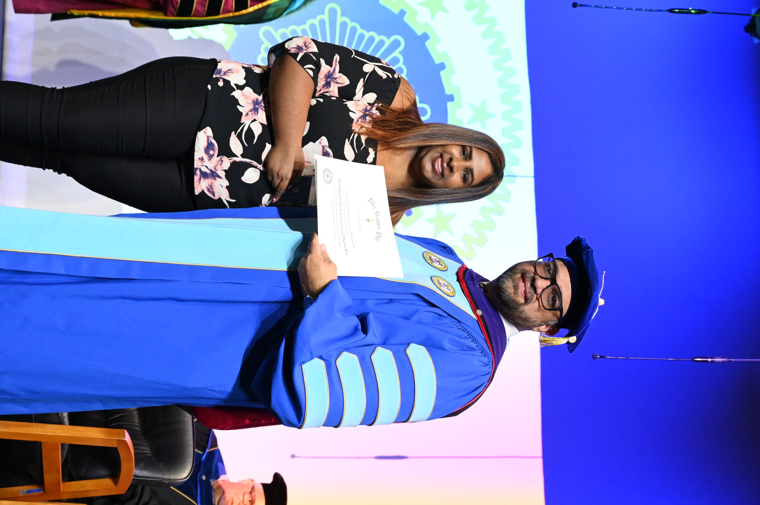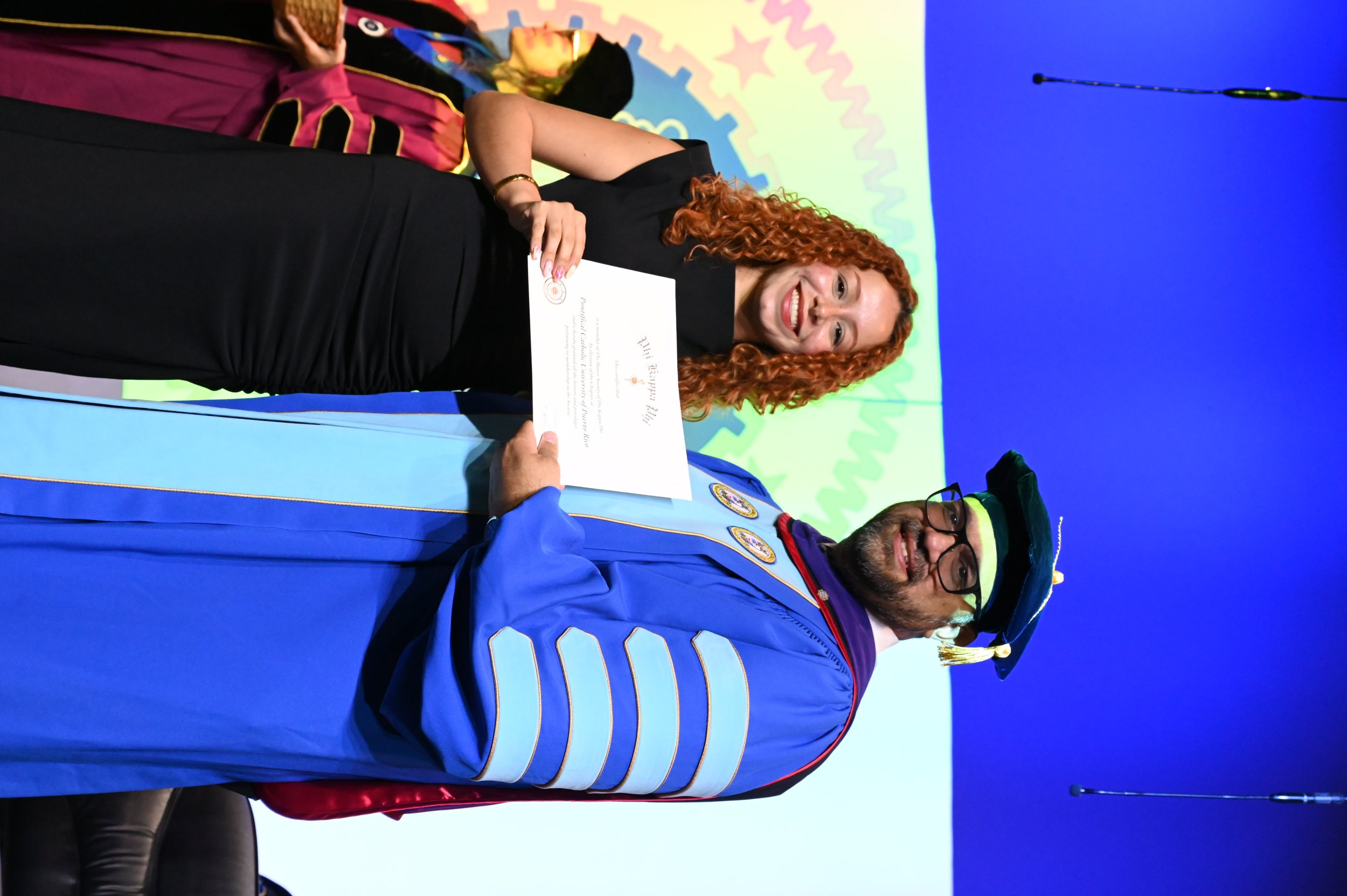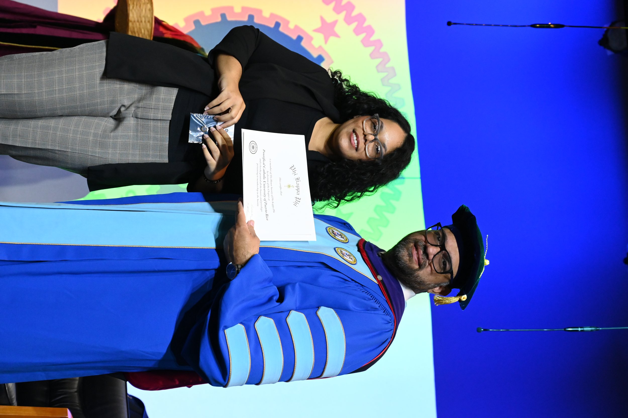 “Actualmente nuestro capítulo tiene aproximadamente 450 miembros desde que comenzó aquí formalmente en el 2016. Es un honor y una responsabilidad muy grande por lo que representa. Porque decir yo soy miembro de Phi Kappa Phi, decir yo presido, yo estoy en la directiva conlleva una responsabilidad enorme, pero también es un gusto y un placer poder trabajar con estudiantes, facultad y staff de los 3 recintos” añadió Arroyo.