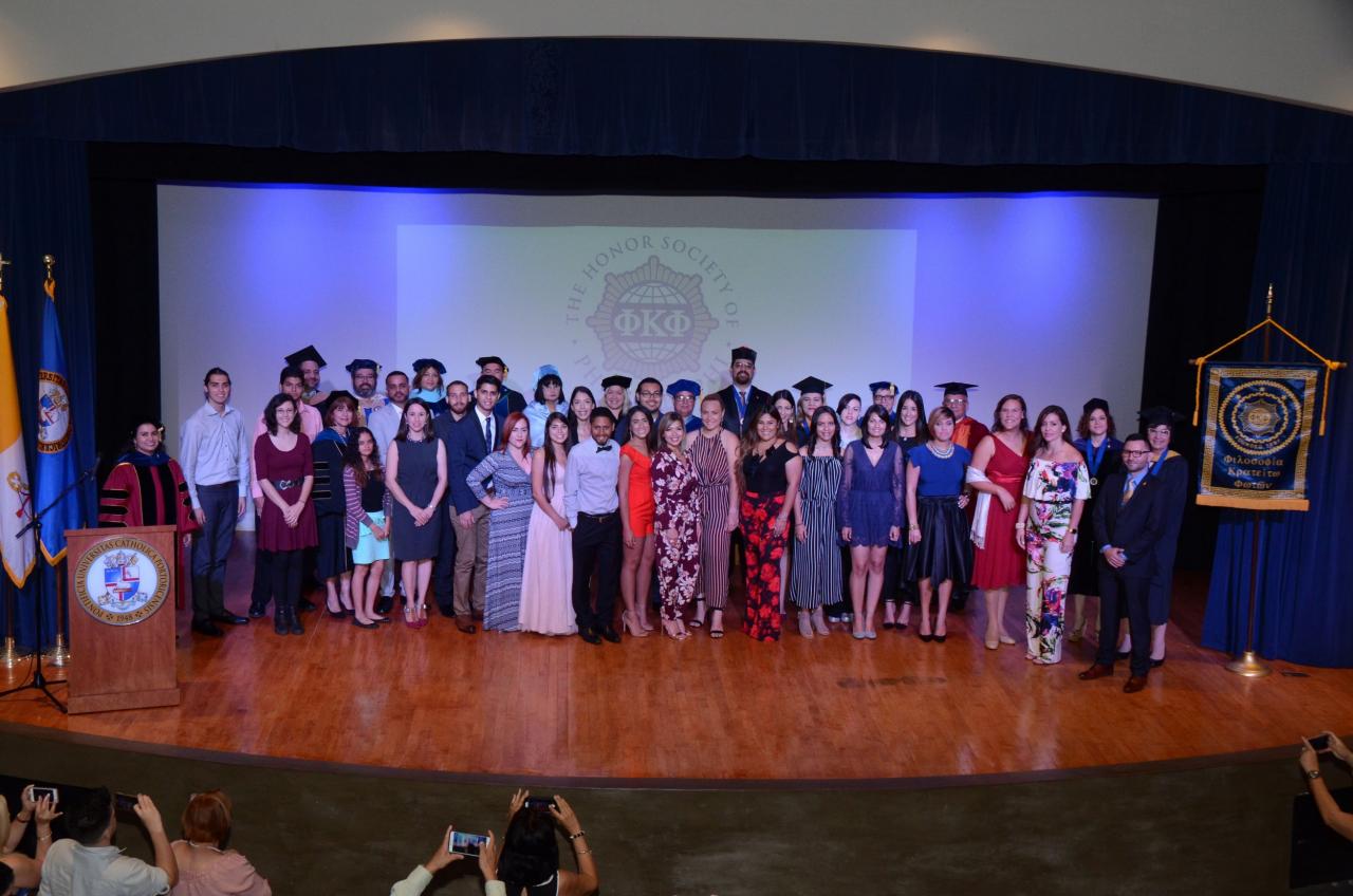 ¡Nuevos miembros se unen a la sociedad de honor más antigua, prestigiosa y rigurosa de Norteamérica, Phi Kappa Phi! El pasado viernes 20 de abril se celebró la segunda iniciación de esta sociedad que reconoce a estudiantes de tercer y cuarto año que se encuentren en el 7.5 % a 10% más alto de su clase. Este año, veintisiete Pioneros fueron los escogidos para formar parte de este selecto grupo. La iniciación se llevó a cabo en el teatro Monseñor Vicente Murga y contó con la asistencia de estudiantes, profesores y decanos.