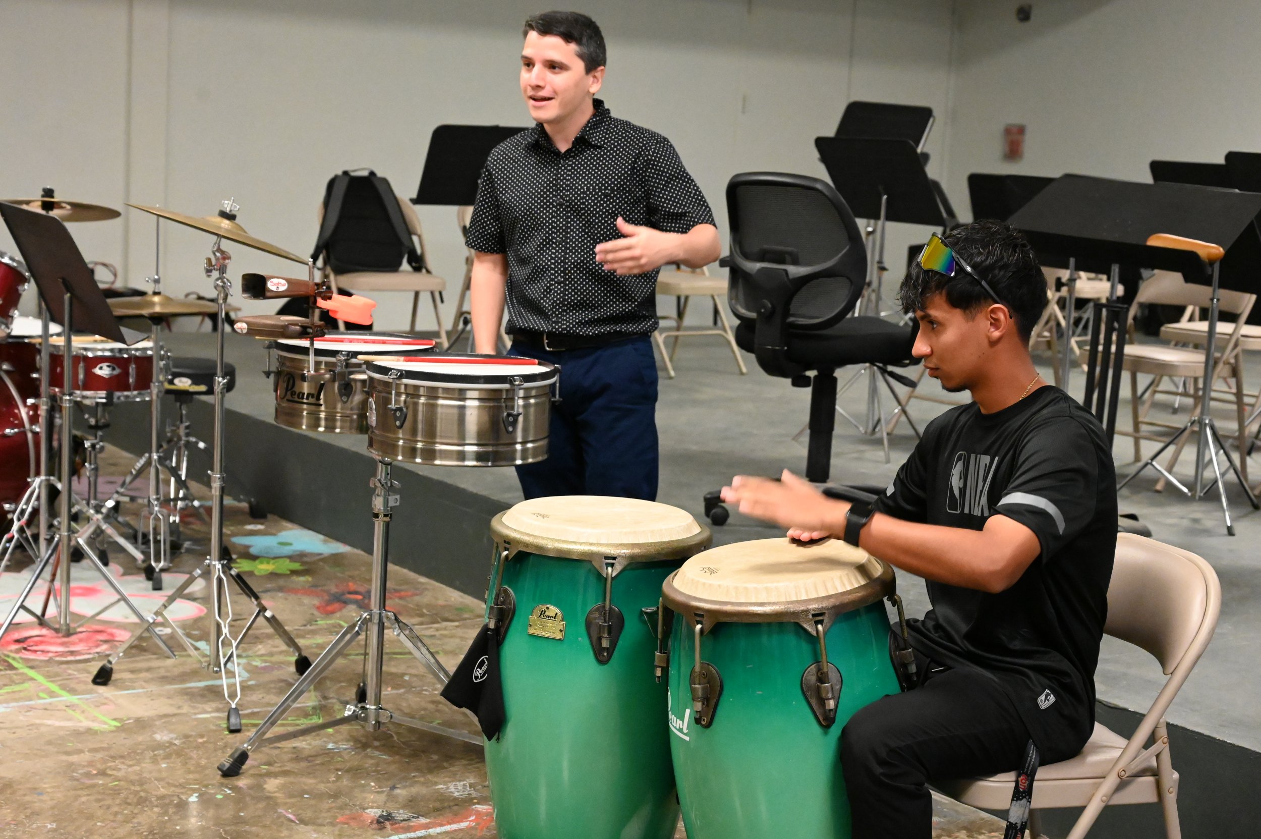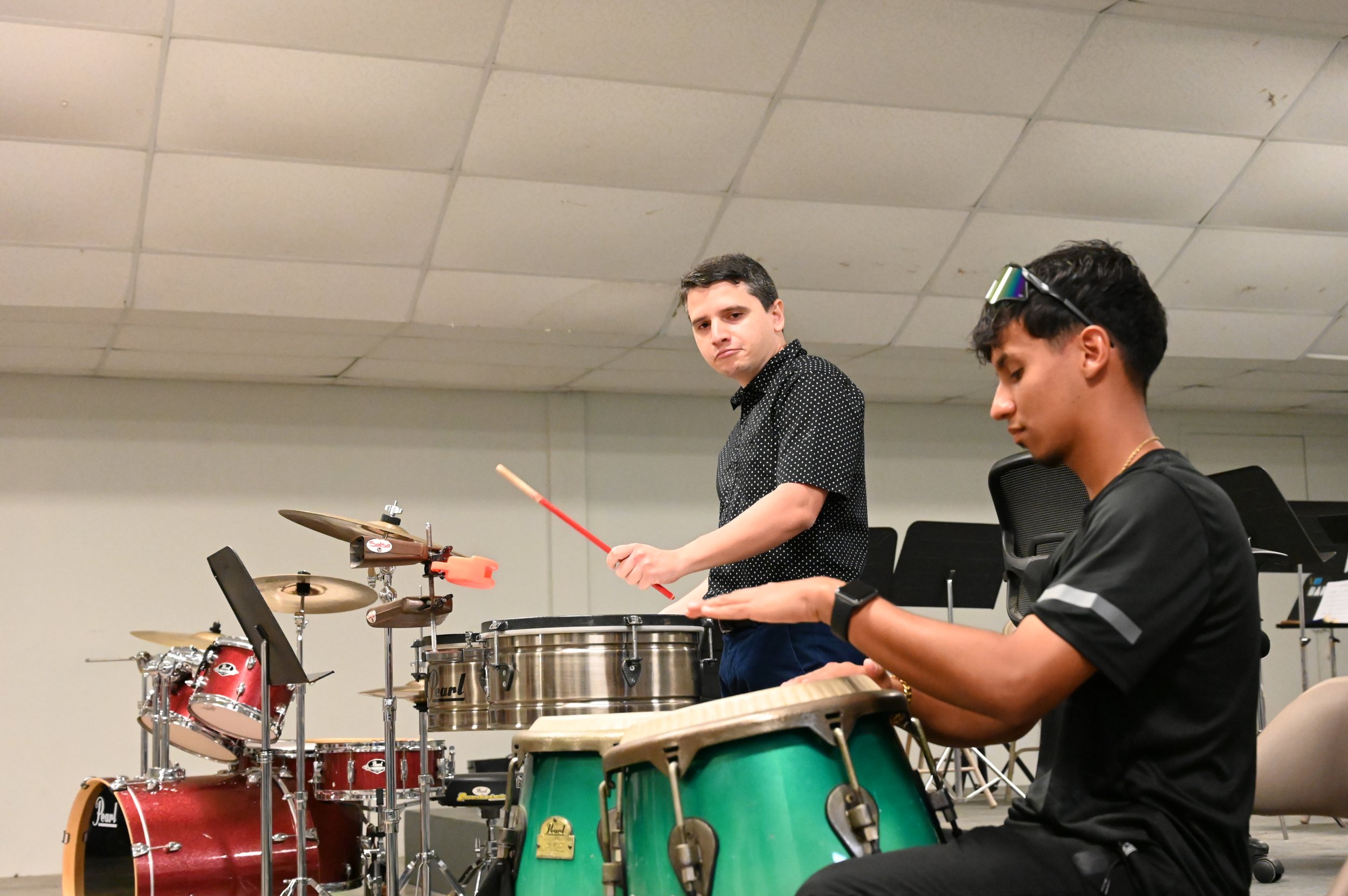 “Esto ha sido una excelente oportunidad. Yo fui miembro de la banda dirigida por el Prof. Peter Vega por lo que es un privilegio que me hayan invitado y poder dar este taller a los estudiantes. Estuvimos hablando de cómo implementar los sonidos de los instrumentos de percusión a un ambiente latino. Practicamos los toques de en las congas, los ritmos de las congas, los ritmos del bongó, cuáles son los roles y en qué parte de la pieza musical debemos tocar y cómo debemos tocarlo y dándole énfasis a la clave, porque en muchos casos la clave tiende a cruzarse y cuando se cruza la clave se cae el tema” sostuvo el músico.