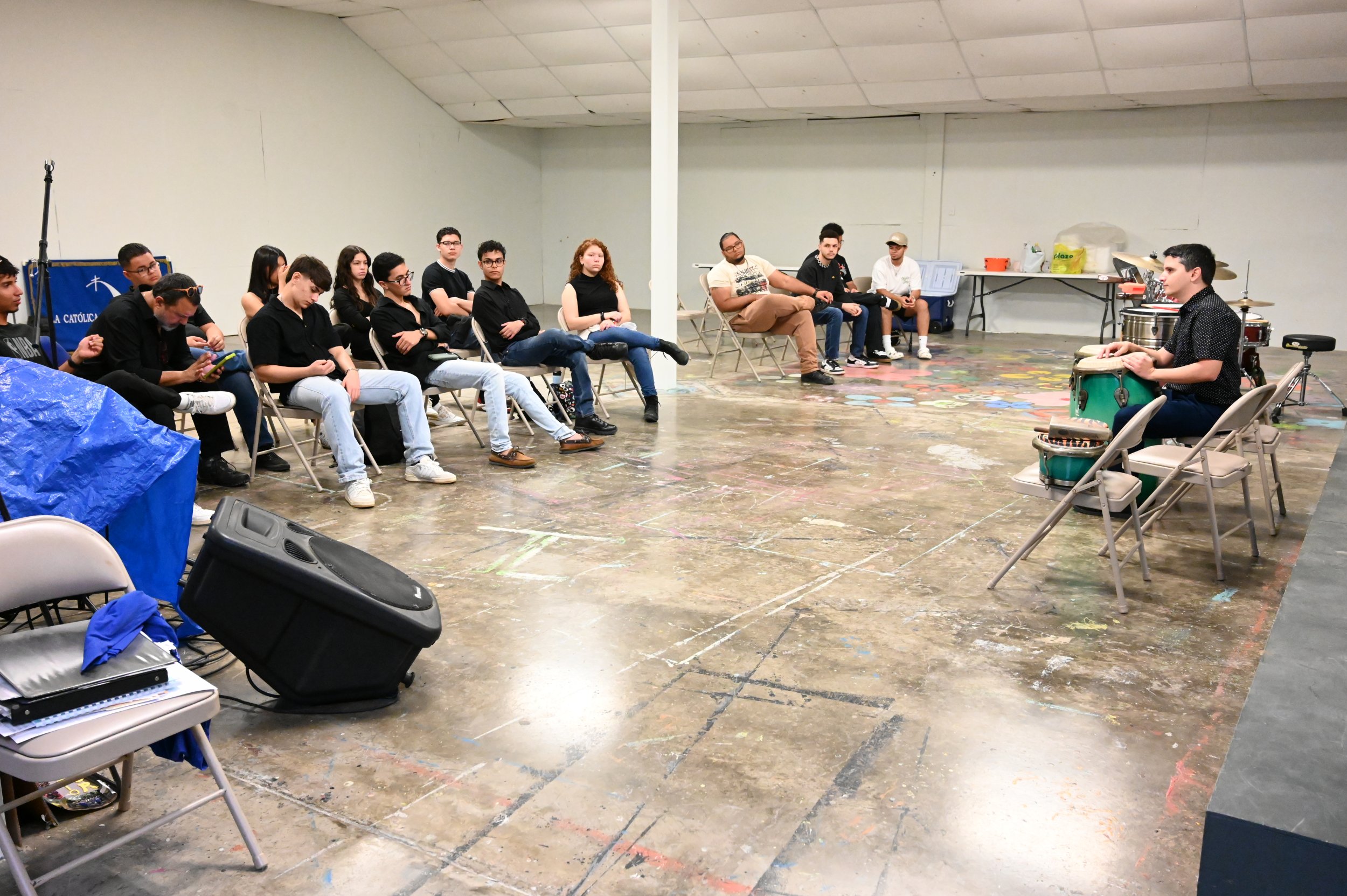 Braulio Díaz Chamorro se destacó como miembro fundador de la Banda Universitaria de la Pontificia Universidad Católica de Puerto Rico de donde es egresado del Departamento de Música. Su pasión por la música, en especial por la percusión, lo ha llevado a ser un sobresaliente profesor y maestro que inculca en sus alumnos su amor por el ritmo. Braulio, quien durante este semestre fue parte de la facultad de Música de La Católica, fue invitado a ofrecer un masterclass a los estudiantes en general y a los miembros de la Banda.