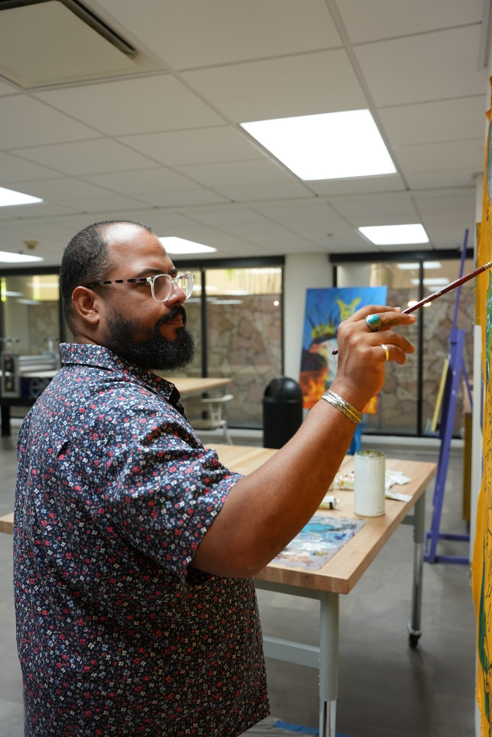 Por nueve años laboró en el Departamento de Planta Física de La Católica y en todo momento se destacó por su excelente trabajo. También decidió ingresar en la universidad y estudiar educación secundaria con concentración en historia y lo logró, pero el destino tenía otros planes y, por la influencia de un profesor, su vida dio un giro y se enamoró de las bellas artes. Esa es la historia del artista plástico Baco Ortiz.