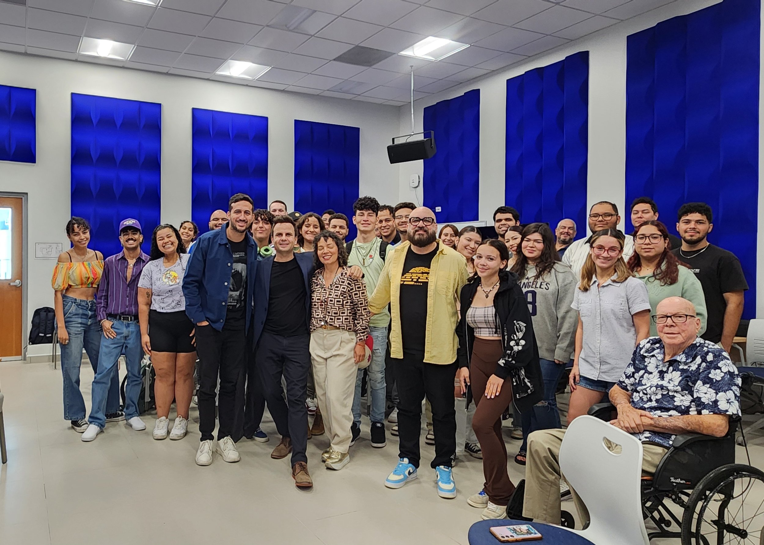 El Dr. Ruiz Mestre añadió una intervención musical acompañando con su guitarra a la soprano invitada Doris Muñoz interpretando la canción “Hymne à l’amour”. Además, Fred Mojica, estudiante de la PUCPR, fue escogido para presentar una de sus producciones musicales ante los invitados. De esta forma se pudo mostrar el talento y las inquietudes de los estudiantes a los productores visitantes.