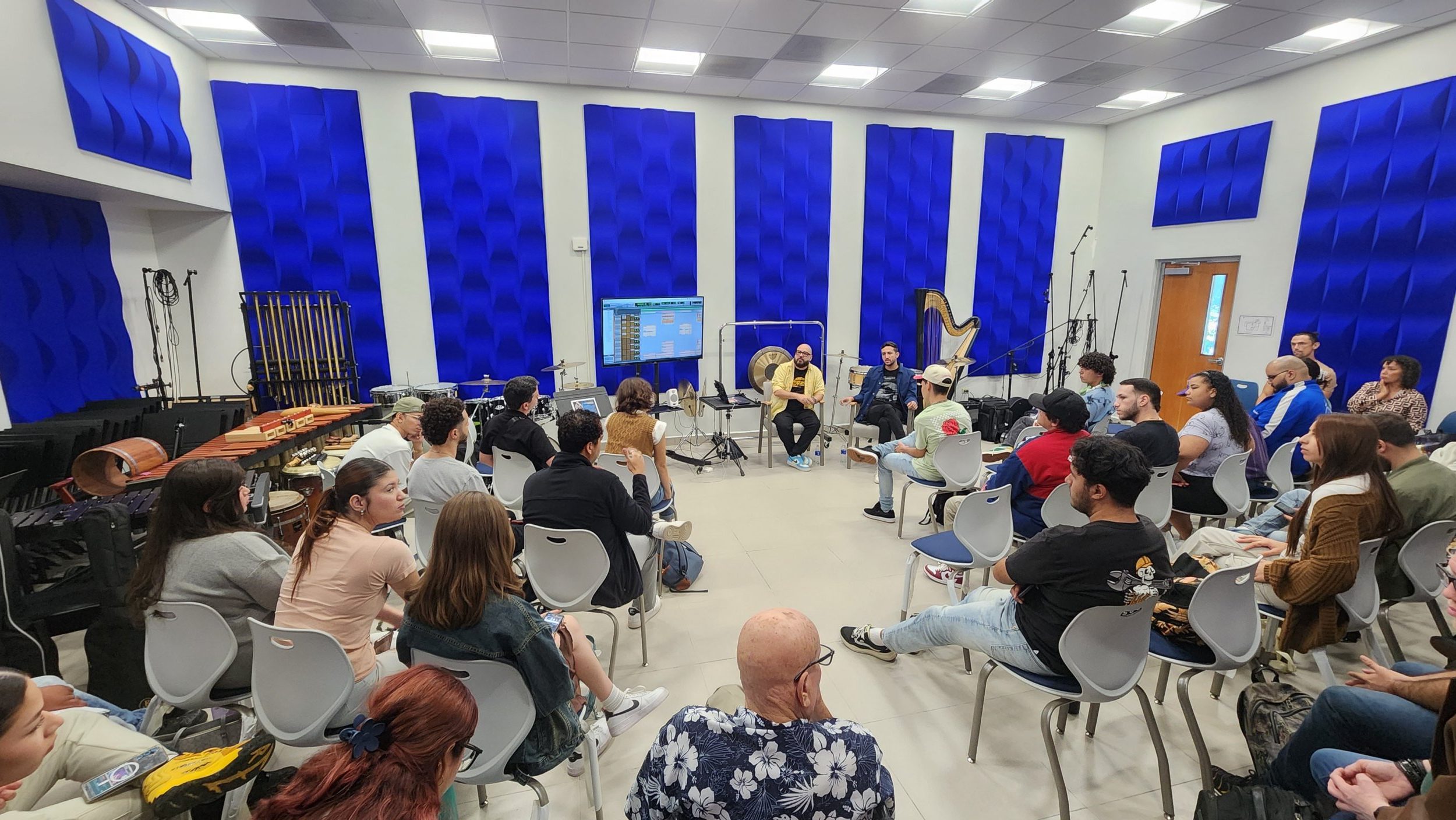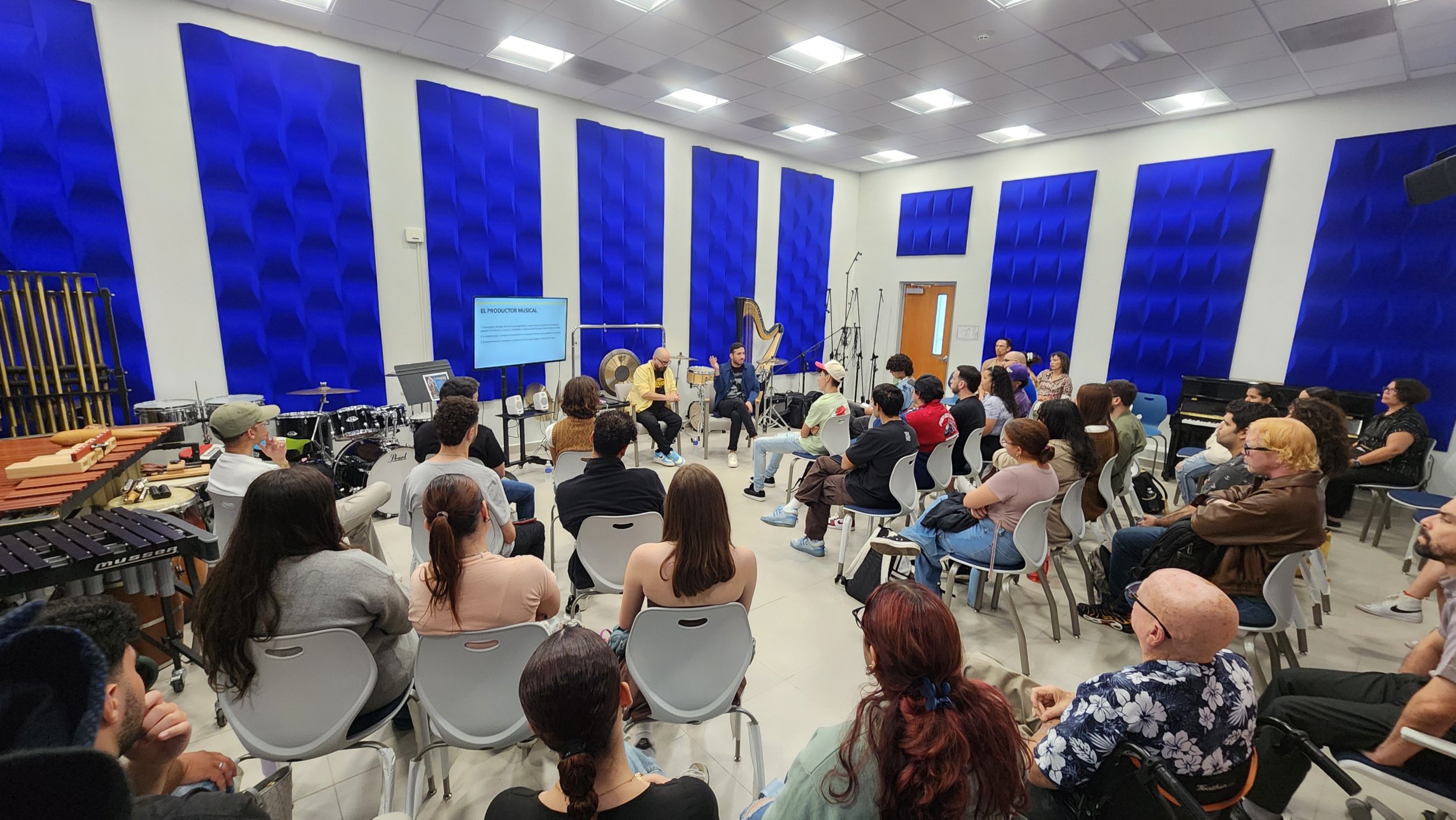 El Departamento de Bellas Artes, Música y Teatro de la Pontificia Universidad Católica de Puerto Rico ofreció un seminario sobre producción musical en el cual participaron Harlod Wendell Sanders, ingeniero de mezcla musical y productor y Josiane Feliciano, guitarrista e ingeniero de audio. Ambos ganadores del premio Grammy. El evento fue organizado por el Dr. Hermelindo Ruiz Mestre. En la primera parte de la actividad Josiane Feliciano explicó sobre la importancia del productor en la historia de la grabación musical y expuso cómo ese rol ha ido evolucionando según el desarrollo tecnológico de los últimos 100 años. Luego los ingenieros presentaron alguna de las producciones destacadas para la música latina en las que han trabajado. Desde su experiencia Harold Wendell mostró la sección de mezcla musical que hizo para el tema “Dulcito e coco” de Vicente García, una canción icónica de la música latina reciente. Para finalizar se celebró un conversatorio con los estudiantes en el que se dialogó sobre la industria de la música actual.