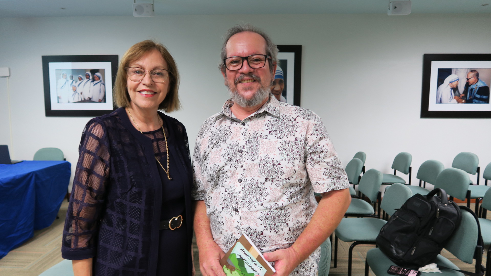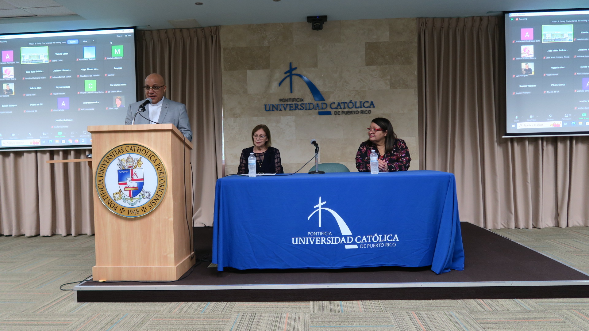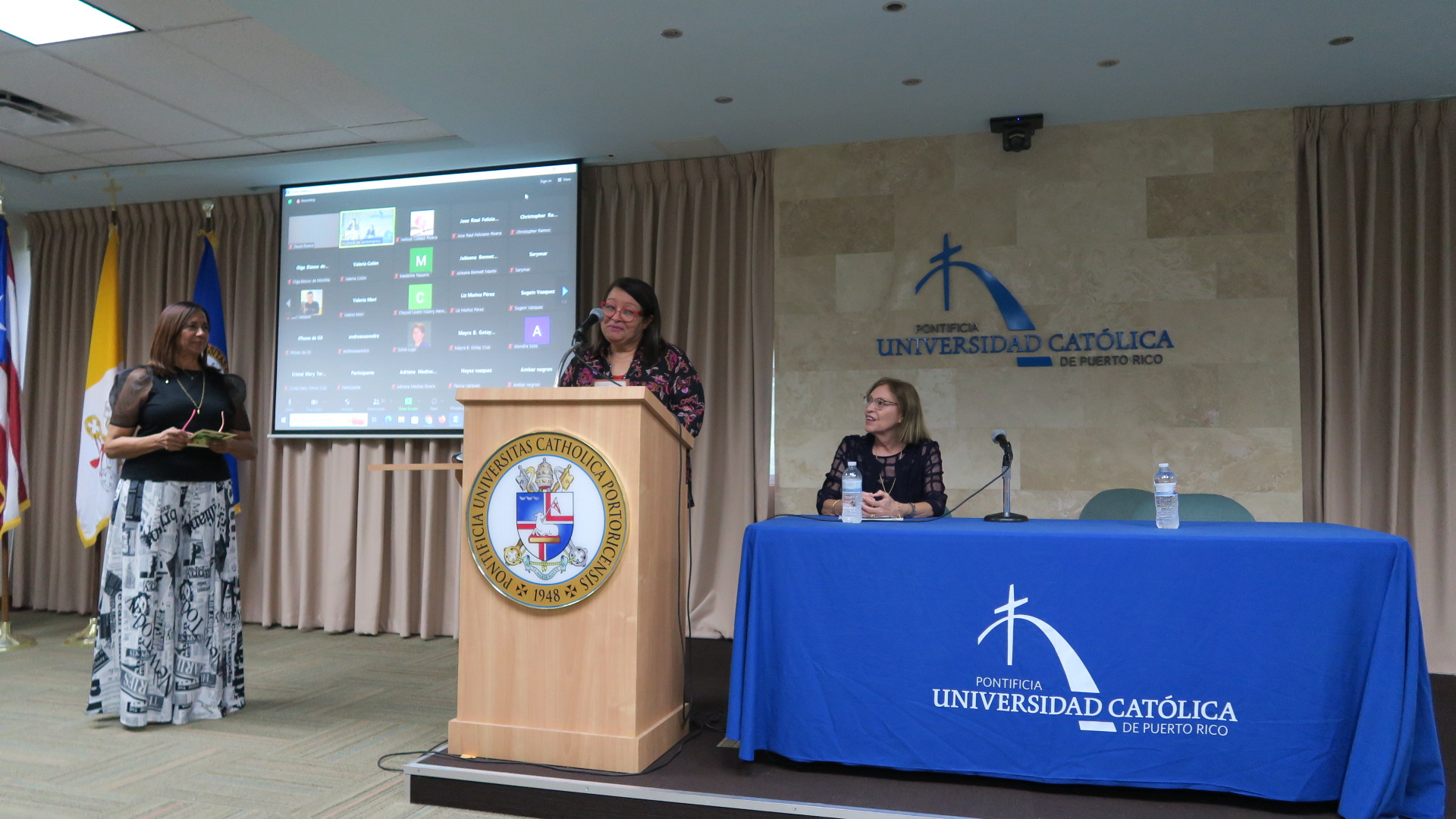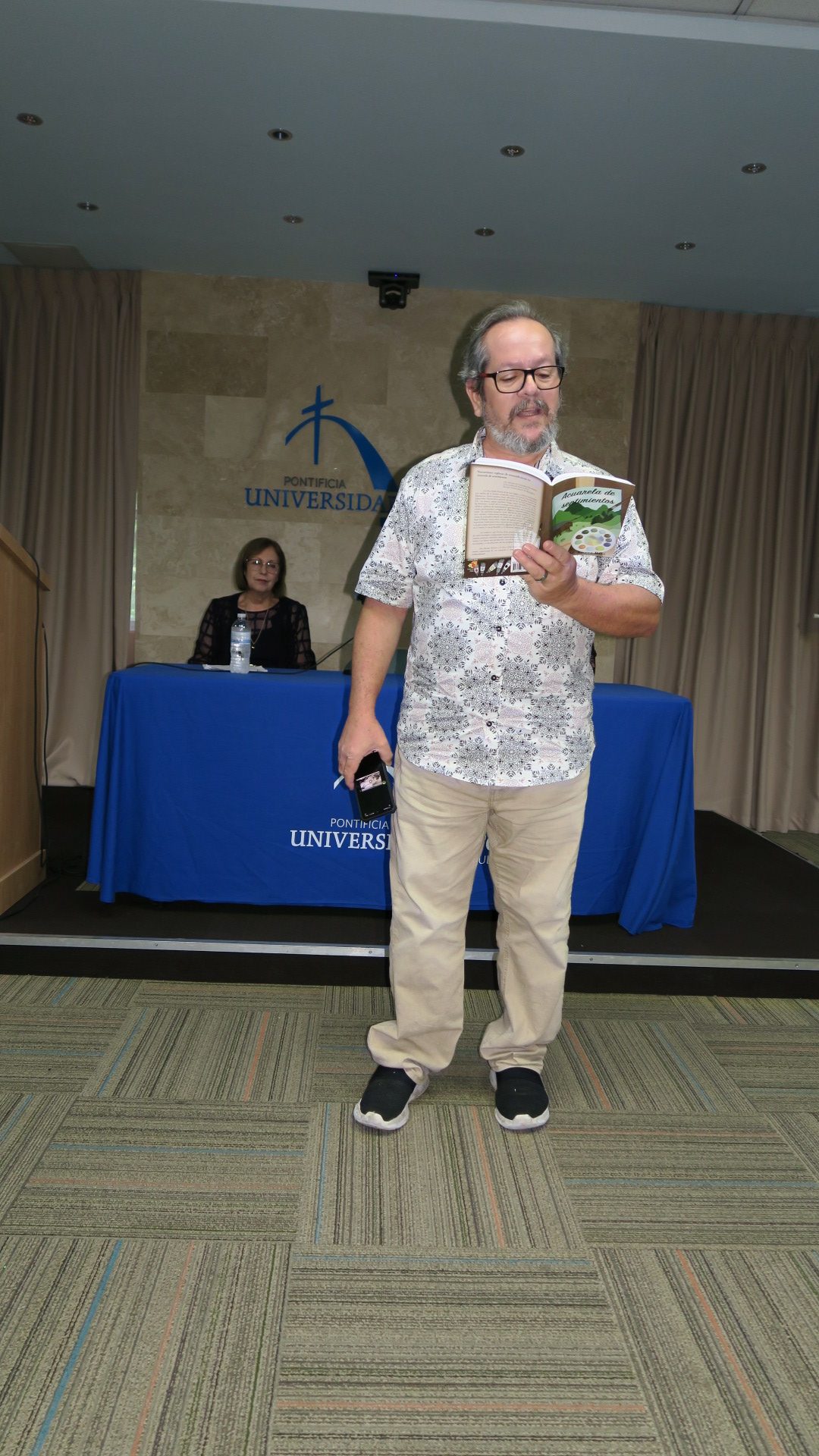 Con una invocación de la Dra. Lesbia Cruz Alfonso, moderadora, a la Virgen María por ser octubre el mes del Rosario, en la que pidió que seamos imitadores de María para traer paz y justicia al mundo, el Departamento de Estudios Hispánicos de la PUCPR presentó el libro de cuentos Acuarela de sentimientos de la Dra. Gilda Rivera Ríos. El Dr. P. Juan Luis Negrón, decano del Colegio de Artes y Humanidades, comentó estampas de algunos cuentos de Rivera Ríos que evocaban recuerdos de su propia infancia.