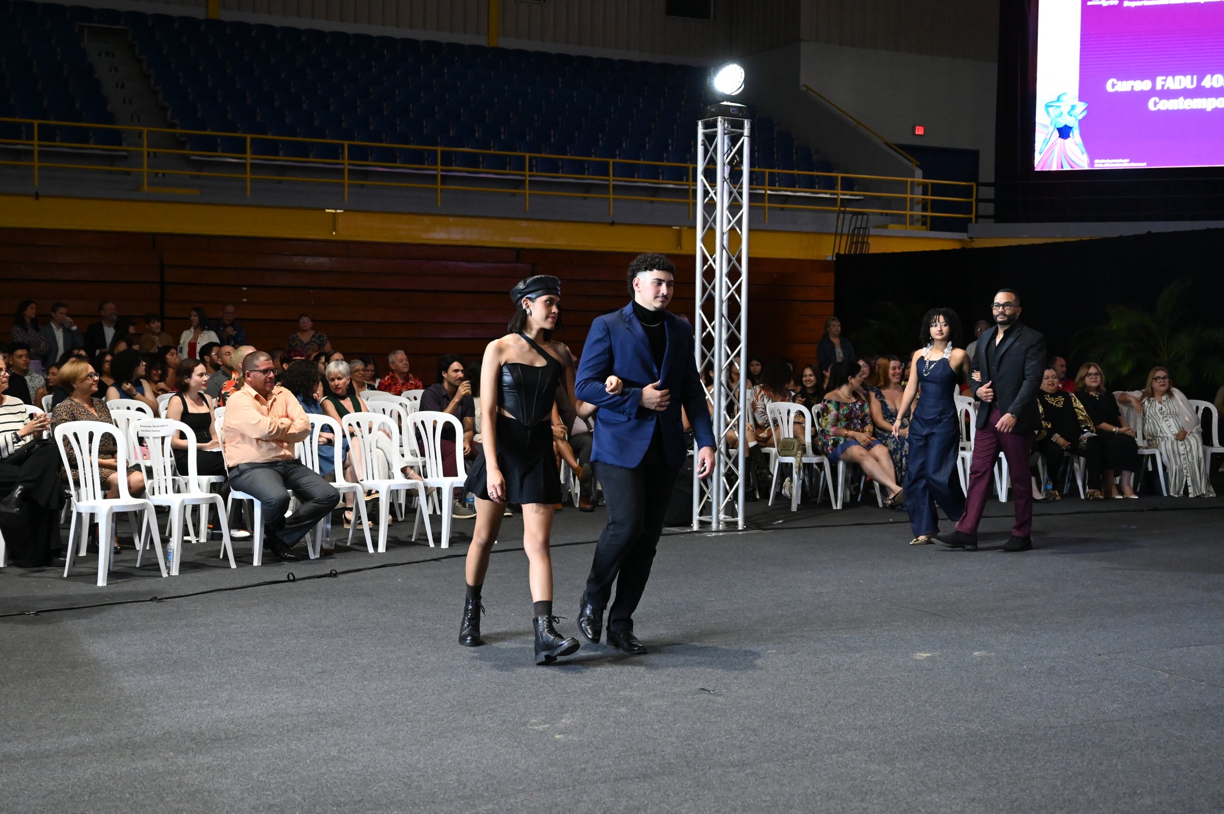 Los estudiantes de primer, segundo y tercer año presentaron 5 estampas en las que mostraron sus destrezas en las técnicas de diseño de moda contemporáneo y responsabilidad social: Industrial Pattern; Advanced Sewing; Tejido de Punto; Entalle y Alteraciones y Modelado sobre Maniquí. En ambos desfiles el intermedio musical estuvo a cargo del guitarrista Hermelindo Ruiz Mestre.