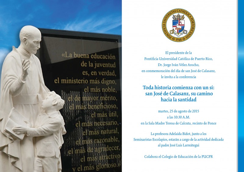 Día de san José de Calasanz By Jalibeth Rodríguez Rivera | August 20, 2015 Posted in General ← Homilía de Mons. Félix Lázaro MartínezConciencia ambiental →