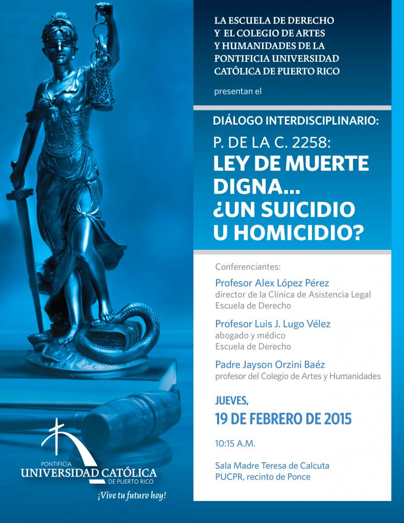 Diálogo Interdisciplinario: Ley de muerte digna…¿suicidio u homicidio? By celimer_torres@pucpr.edu | February 6, 2015 Posted in General ← “La ciencia y el arte de entrevistar”Una vida en salud →