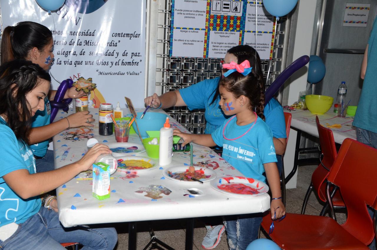También colaboró la asociación de Jóvenes Universitarios Trabajando por la Educación Especial (JUNTEE), quienes habilitaron estaciones para que los niños pudieran, de acuerdo con sus intereses, pasar libremente a colorear, jugar con manipulativos y divertirse. Tal como expresó Sierra Ayala, este tipo de eventos apoya a padres con hijos que tengan esta condición y demuestra que la PUCPR está preparando profesionales para trabajar adecuadamente con esta población.