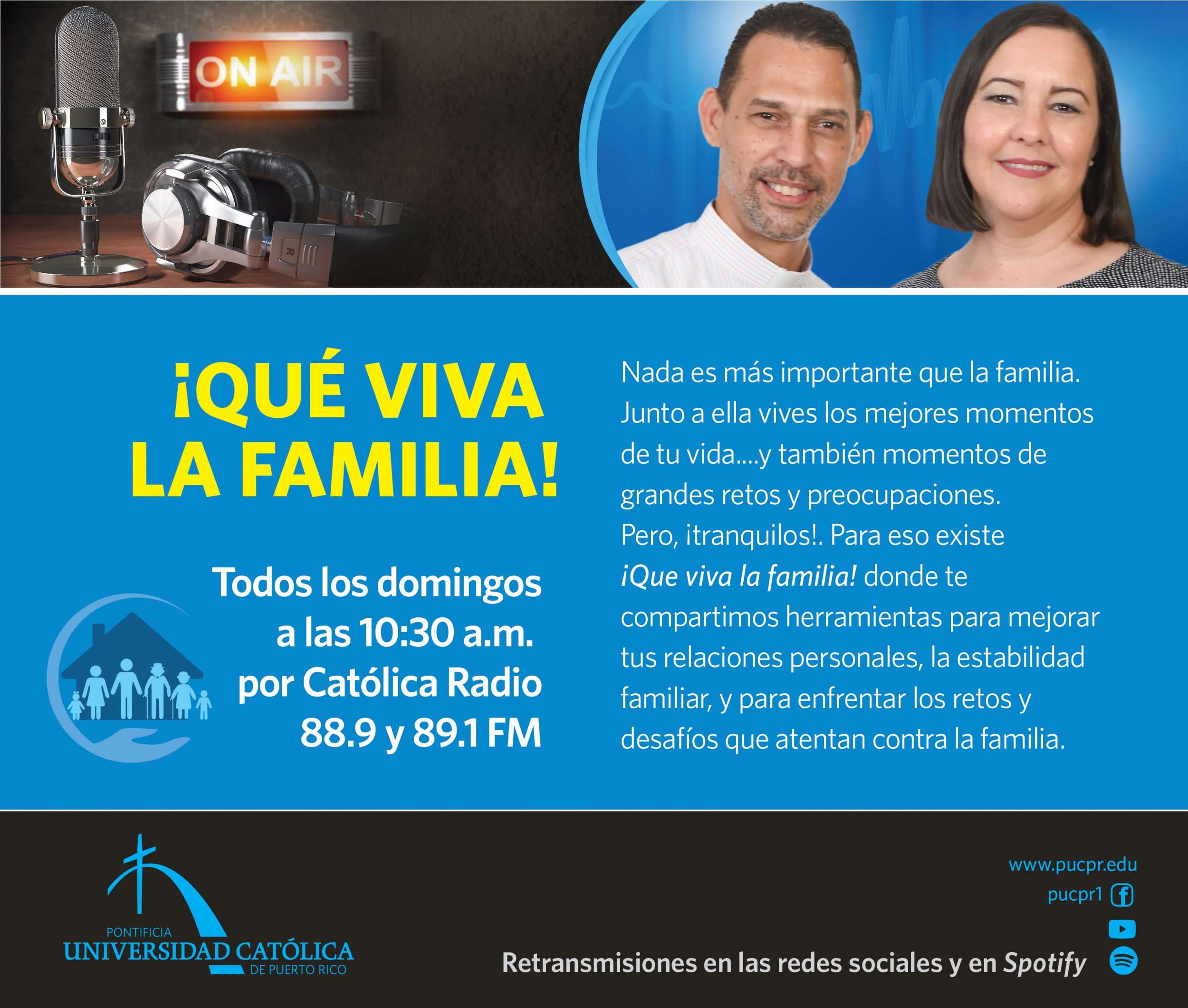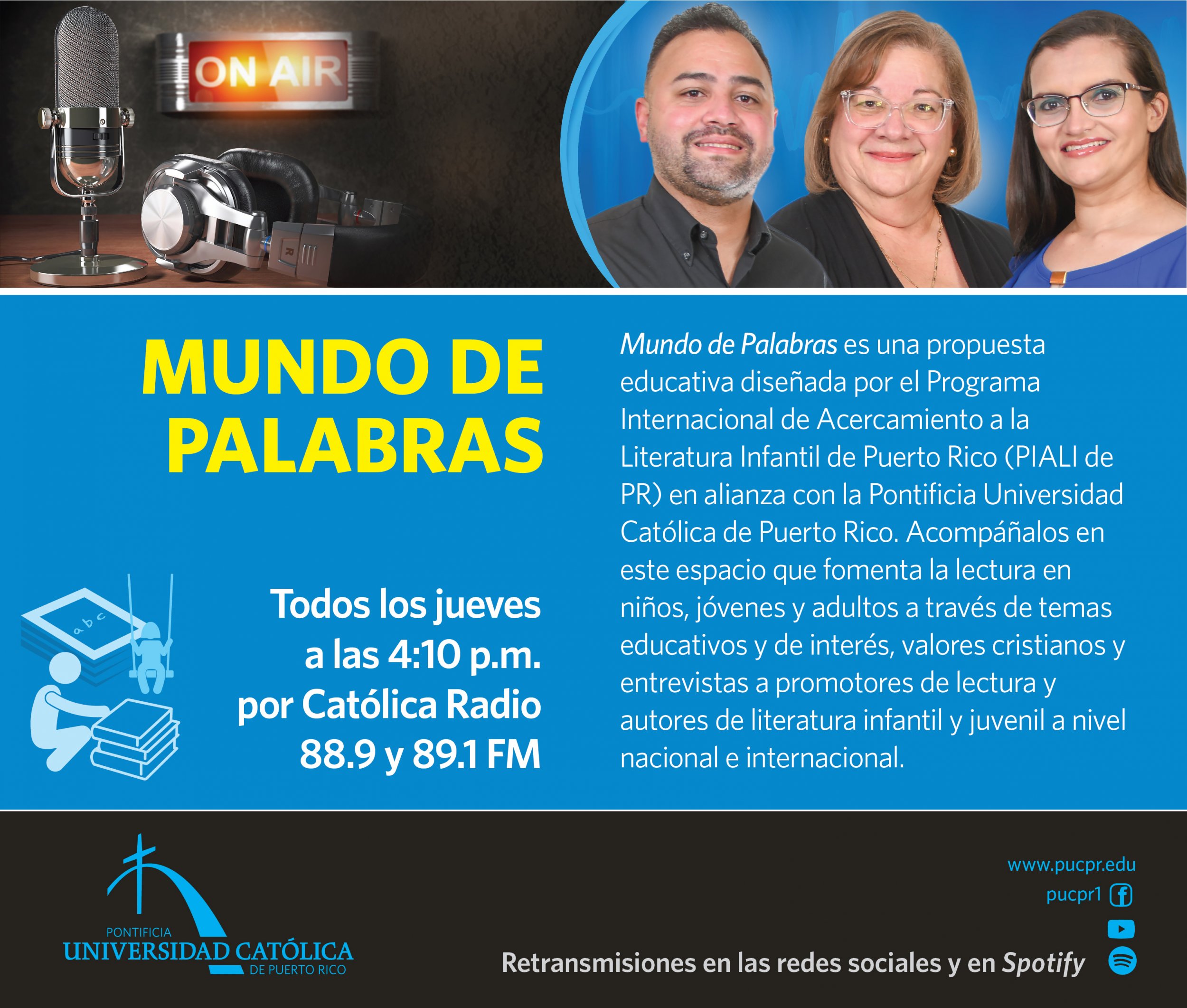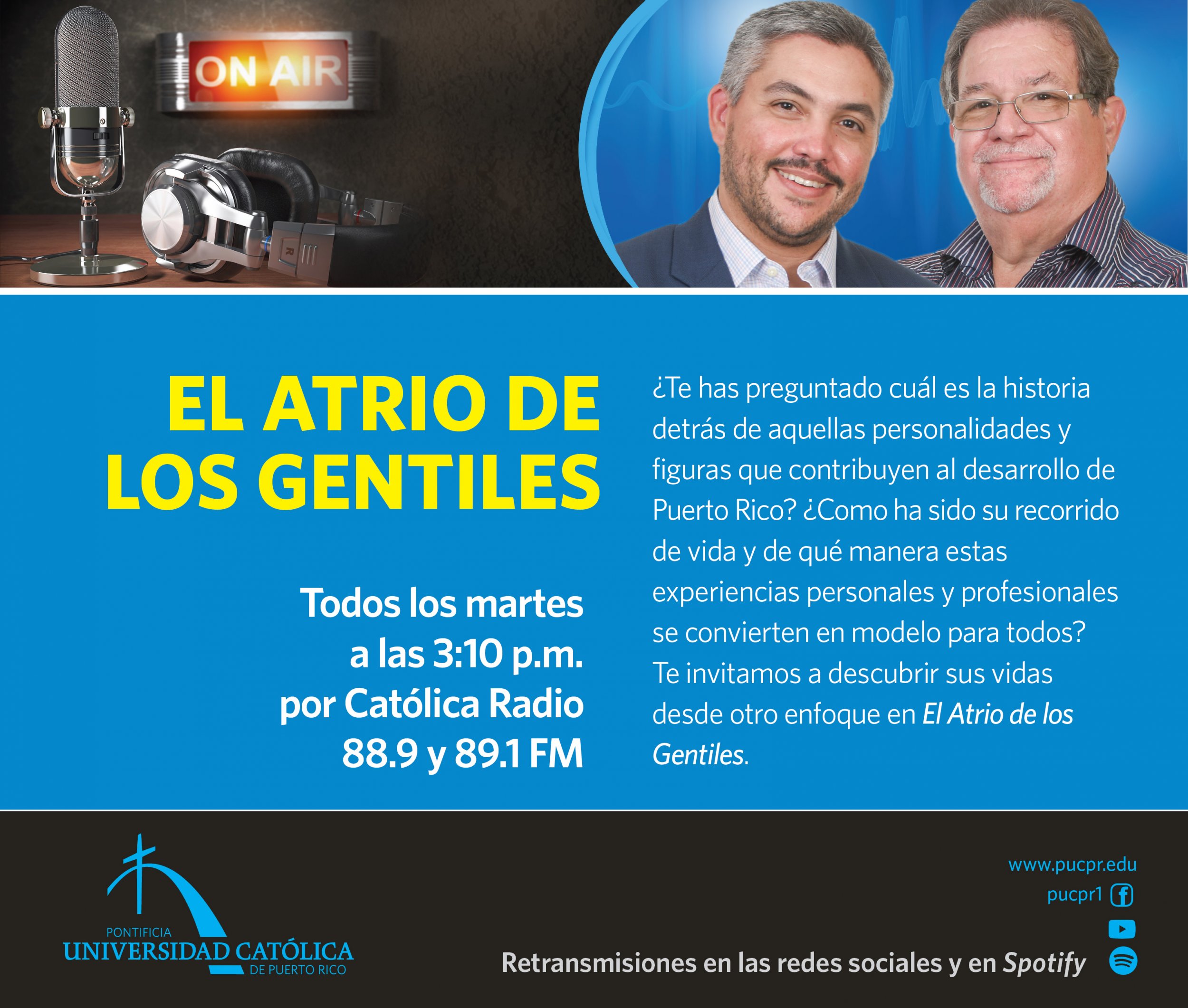 La Pontificia Universidad Católica de Puerto Rico se convirtió en fuente poderosa de análisis, propuestas y de un espacio confiable para ver y juzgar la realidad del país y del mundo. A través de las ondas radiales de Católica Radio, importantes voces de La Católica abren el espacio serio para que tú formes parte del diálogo.