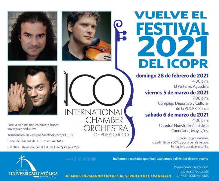 Para disfrutar del Festival 2021 del International Chamber Orchestra of Puerto Rico oprima en los siguientes enlaces: