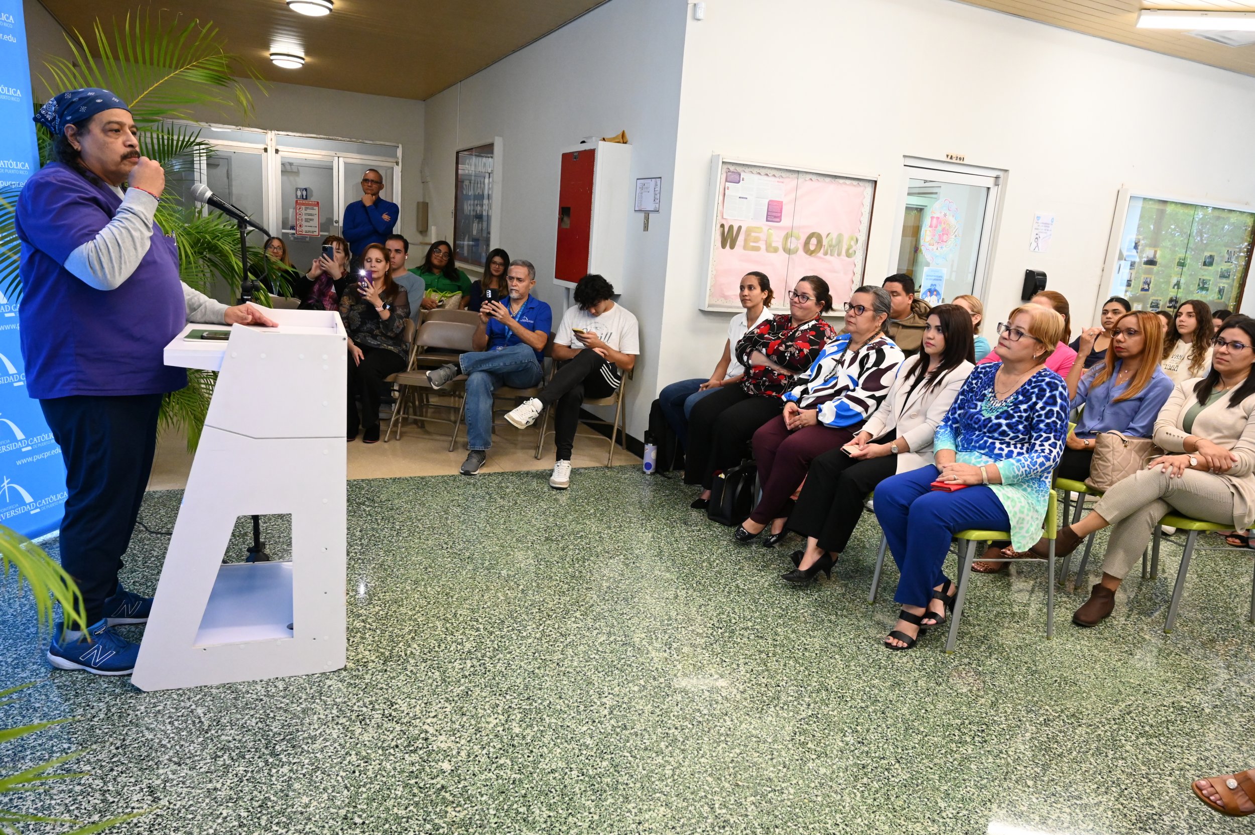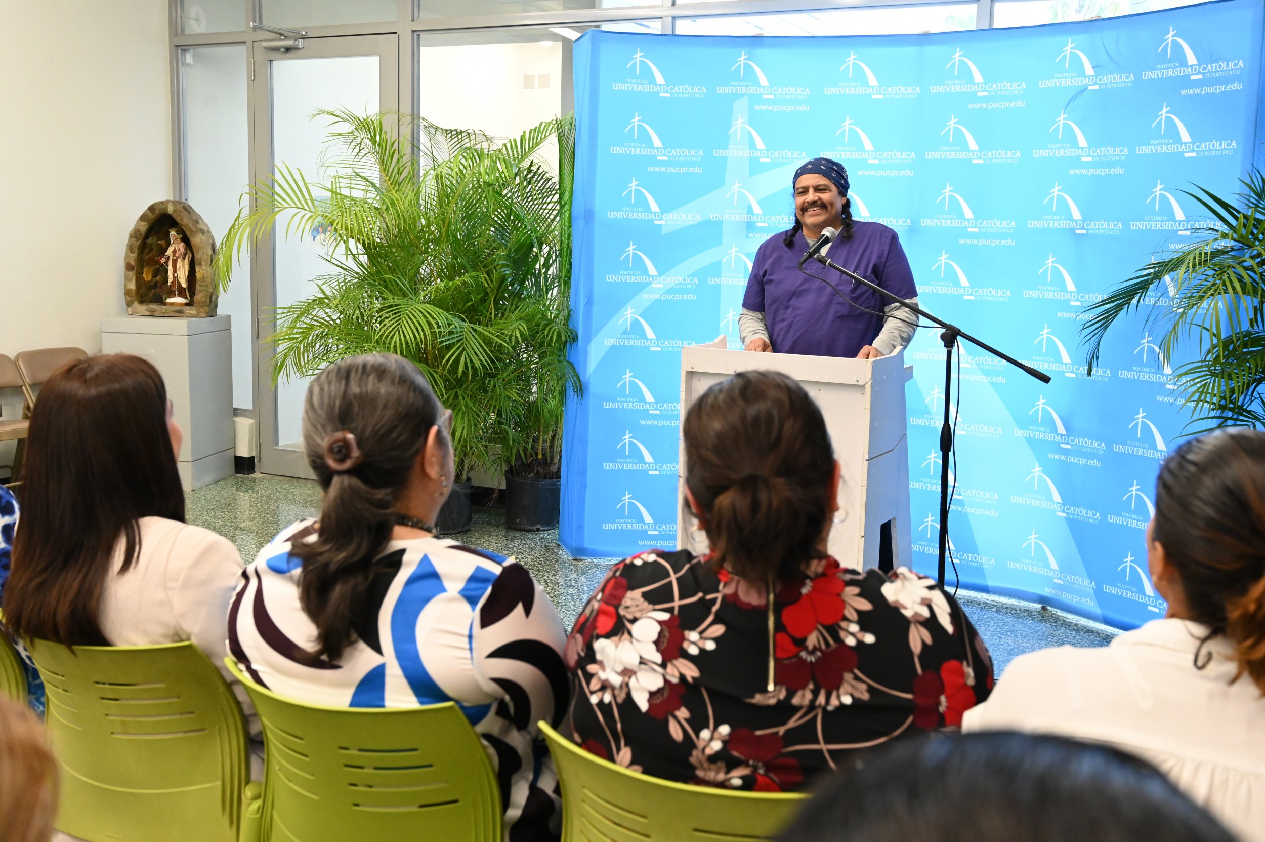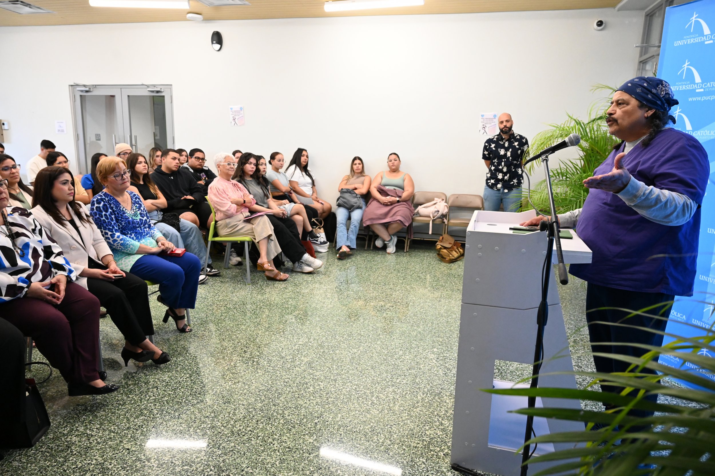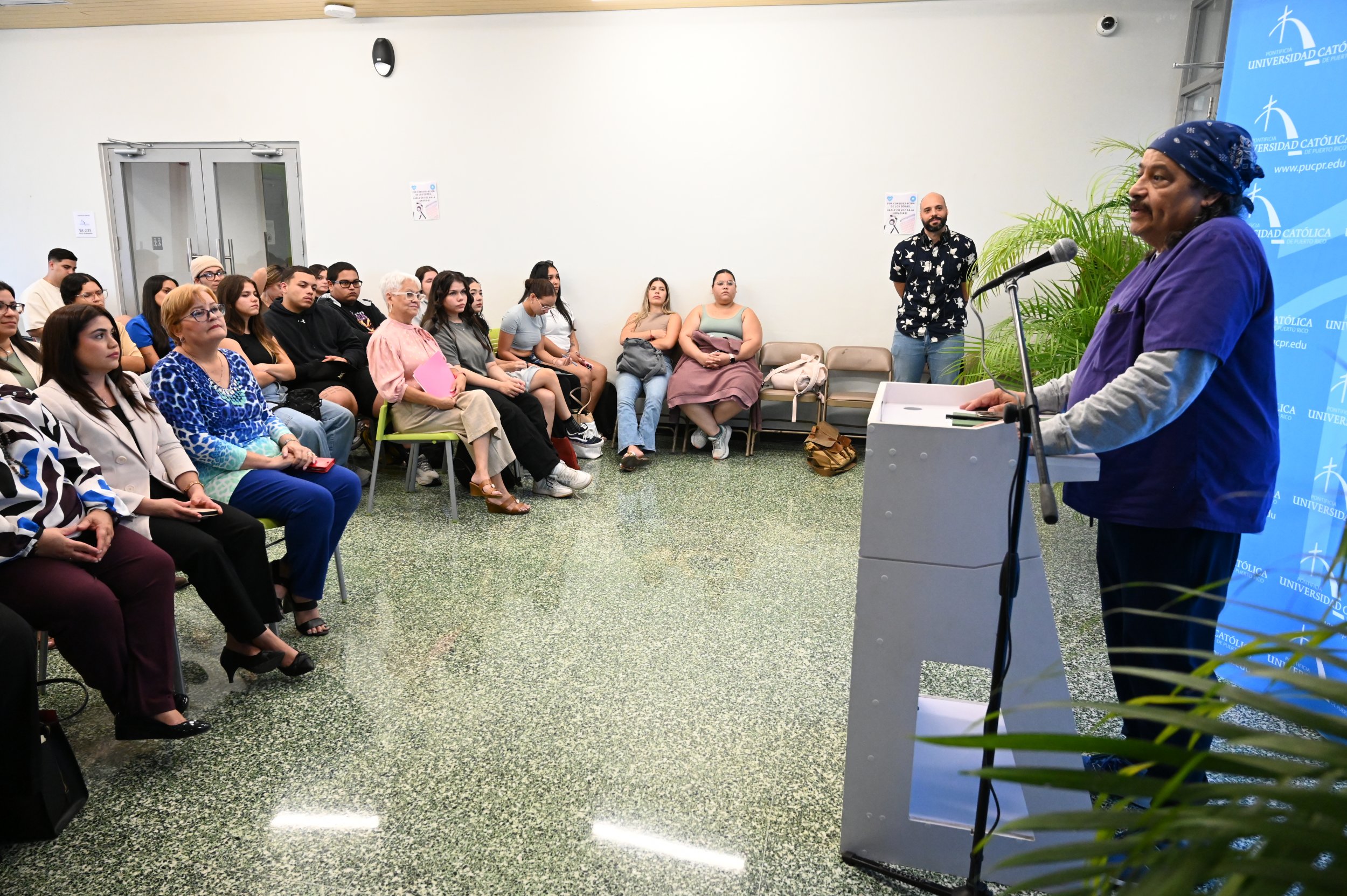 Como parte de las actividades de los cursos de psiquiatría e Introducción a los Trastornos por Uso de Sustancias, el Departamento de Enfermería invitó al Dr. José Vargas Vidot, fundador del proyecto Iniciativa Comunitaria para discutir sobre temas relacionados con el uso de drogas. En su participación Vargas Vidot presentó puntos como la realidad del problema de sustancias en Puerto Rico; el impacto de la disparidad y el discrimen social en los trastornos por uso de sustancias y otros trastornos mentales; y la importancia de un enfoque salubrista en los problemas de adicción enfatizando en las intervenciones profesionales de servicios de salud en la Isla.