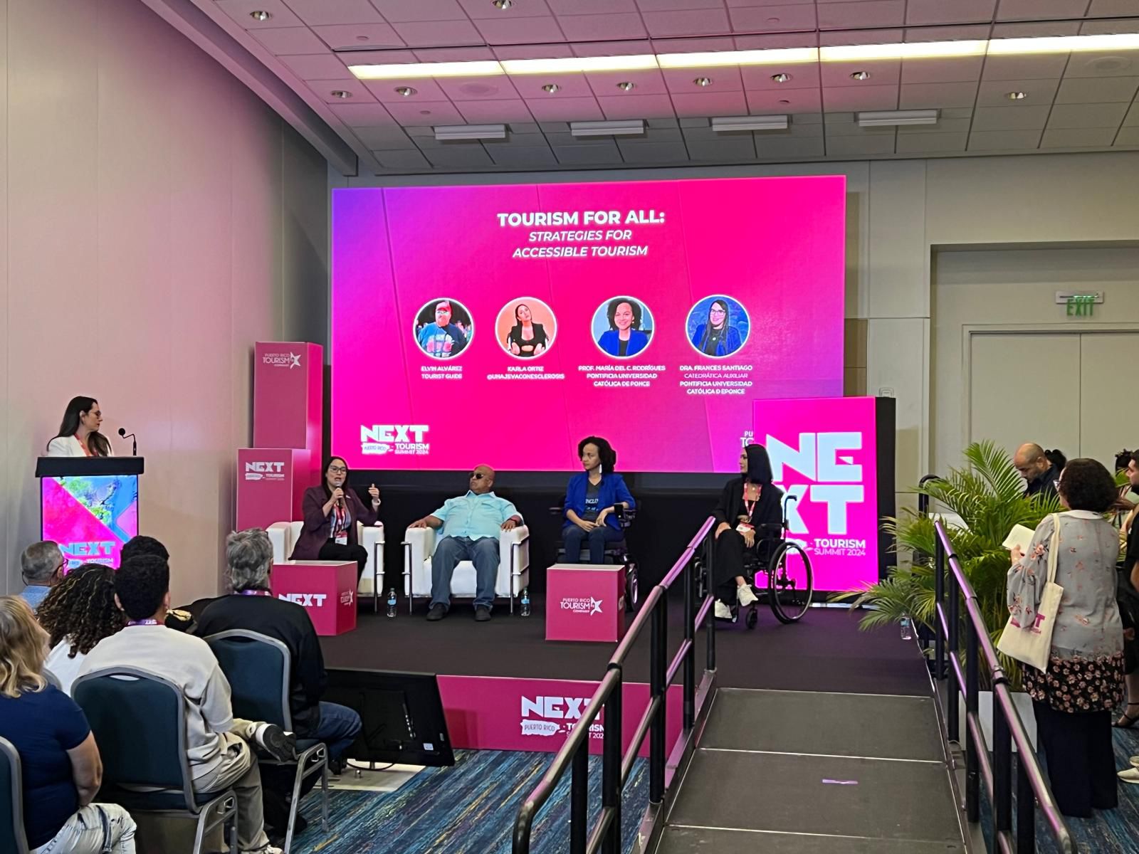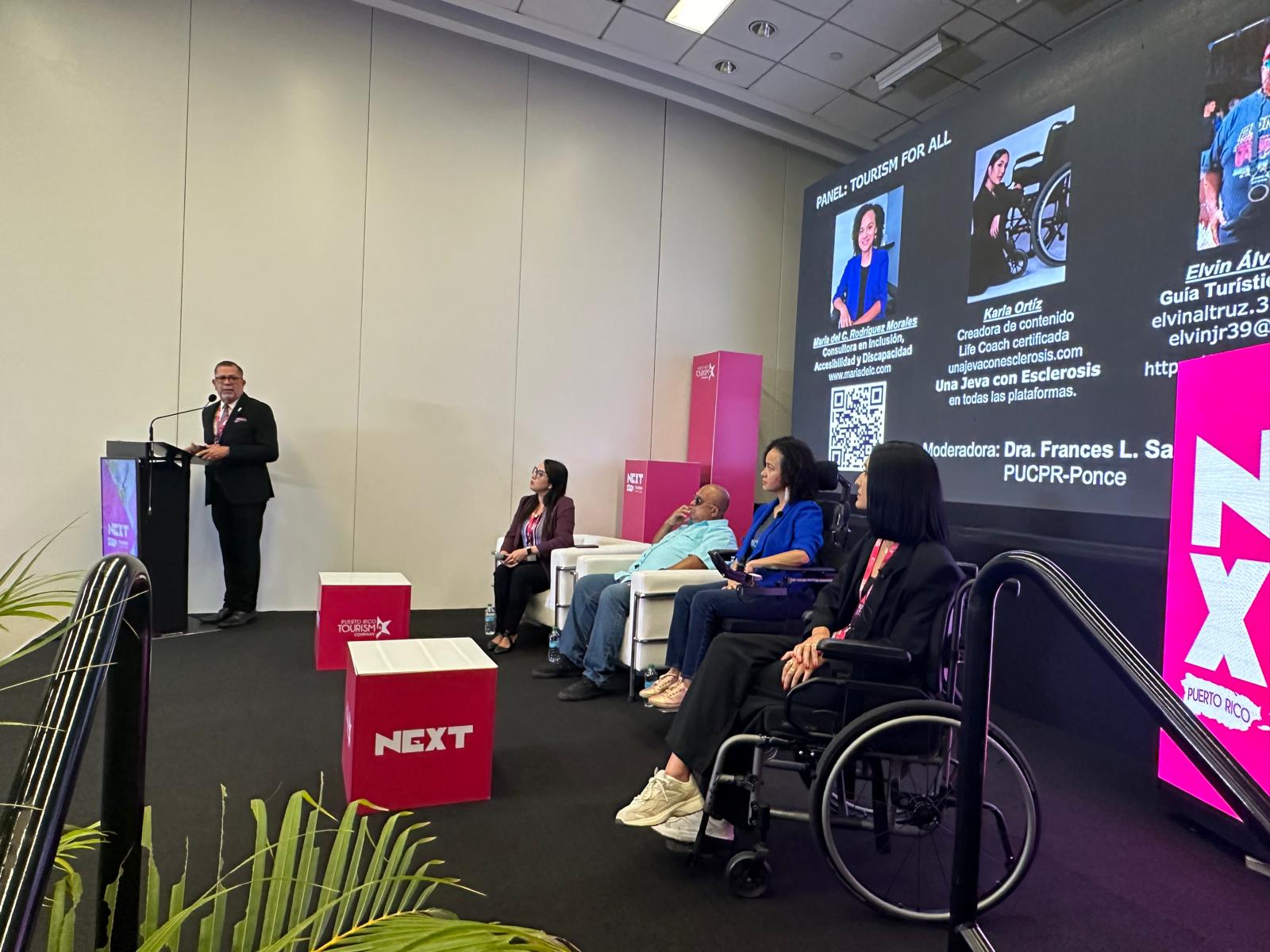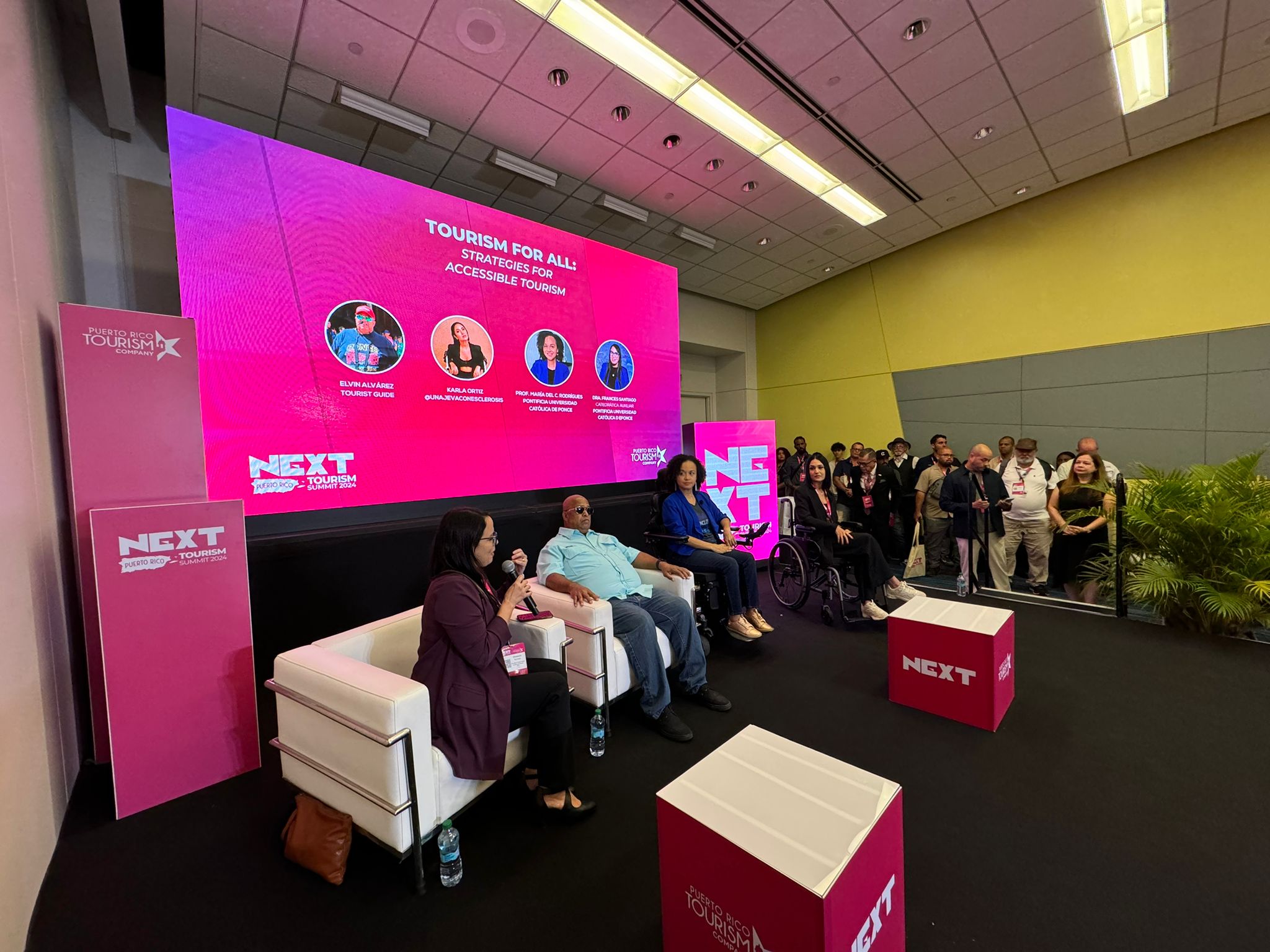 NEXT Puerto Rico Tourism Summit 2024, celebrado recientemente en el Centro de Convenciones Pedro Rosselló, puso de manifiesto la creciente importancia del turismo accesible en la Isla. Uno de los paneles más destacados fue “Turismo para todos: Estrategias para un turismo accesible”. Este foro fue moderado por la Dra. Frances L. Santiago Hernández, profesora del Colegio de Administración de Empresas del Programa de Turismo de la Pontificia Universidad Católica de Puerto Rico (PUCPR). El panel también contó con la participación de Elvin Álvarez Altruz, exalumno del Programa de Turismo de la PUCPR y consultor en inclusión y accesibilidad; María del Carmen Rodríguez, consultora en inclusión y accesibilidad; y la influencer Karla Ortíz. Los panelistas compartieron sus experiencias y visión sobre cómo hacer de Puerto Rico un destino turístico más inclusivo.
