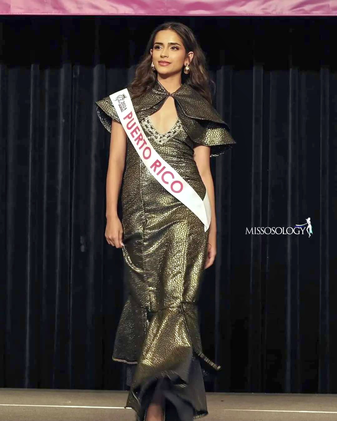 En su explicación del diseño de los vestidos Dayivet indicó “Cuando me dijeron que necesitaba un traje dorado, pensé en algo que le diera silueta y que la hiciera parecer como una diosa y le añadí el toque de la capa porque es diferente y sé que ninguna de las reinas iba a llevar alguna capa de ese estilo. El traje típico está inspirado en el café y en la flora de Puerto Rico porque yo soy de Adjuntas, pueblo montañoso donde hay café en todas las esquinas. La pieza tiene un diseño en la capa hecho por Danny Torres, un pintor adjunteño a quien le agradezco mucho porque su trabajo es espectacular y tiene también detallitos de mariposas, porque mi mamá y yo somos fanáticas de las mariposas “.