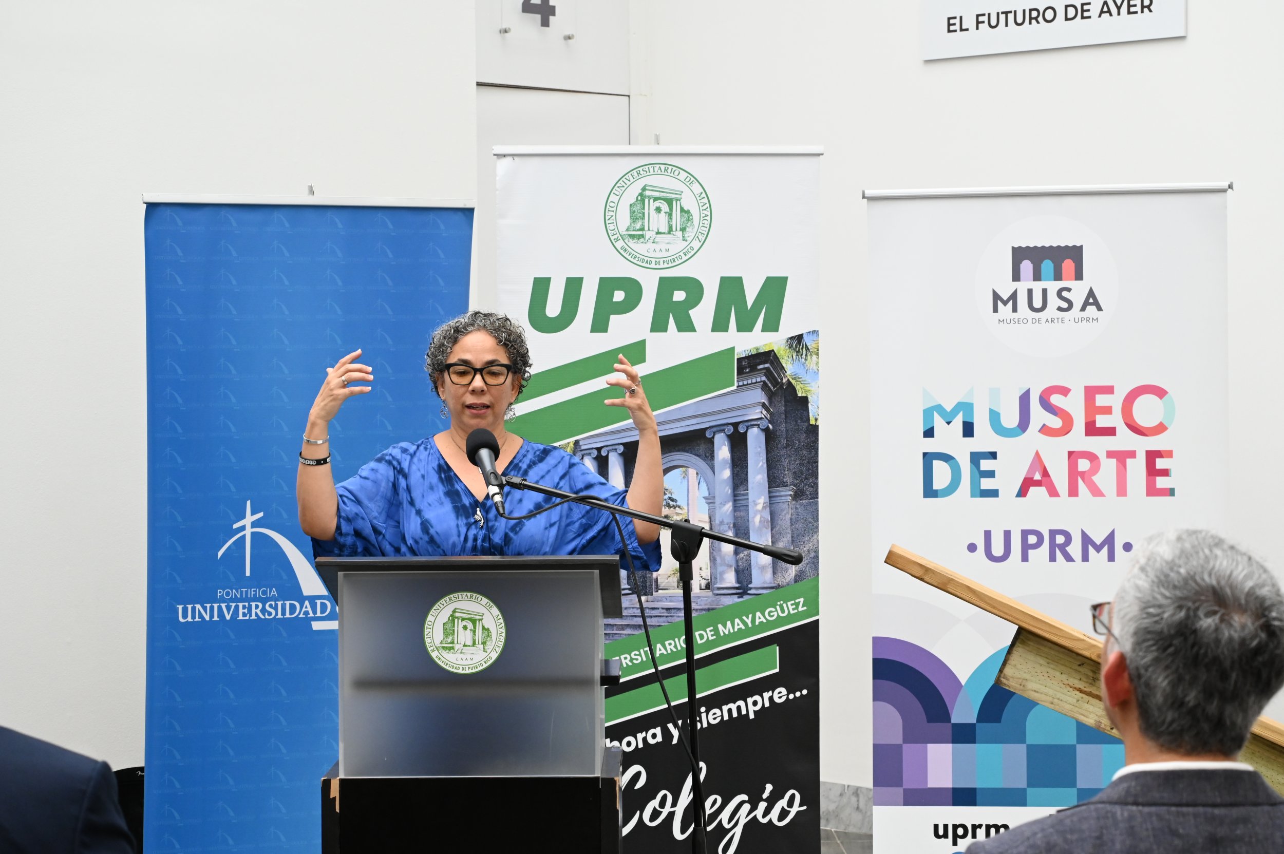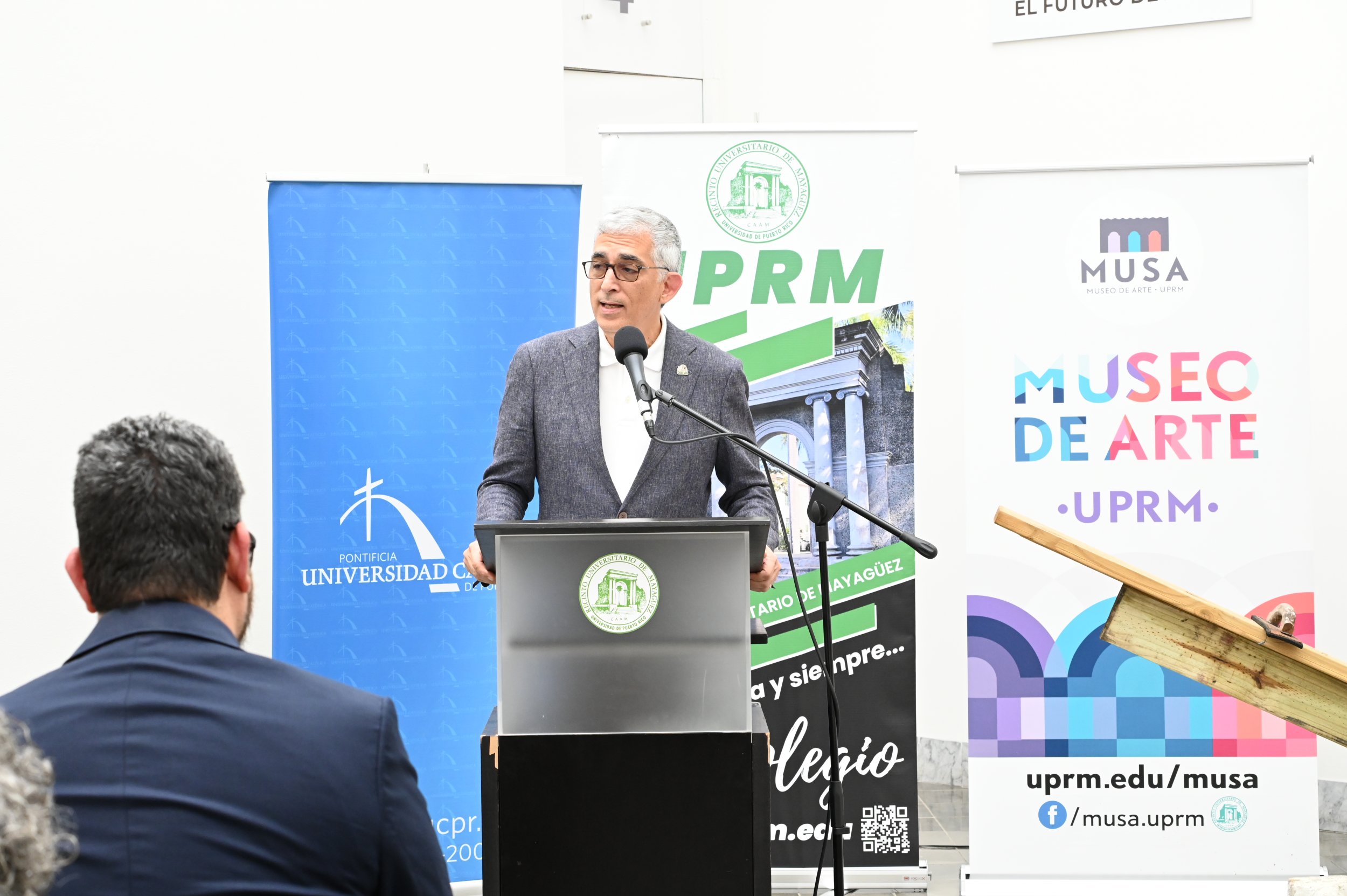 Por su parte, el Lcdo. José A. Frontera Agenjo, presidente de la PUCPR indicó que “Para nosotros es un esfuerzo extraordinario y consideramos que es un modelo de cómo deben ser las colaboraciones entre las universidades en el que el Recinto Universitario de Mayagüez de la Universidad de Puerto Rico y nuestra Pontificia Universidad Católica se hayan podido unir para hacer esta muestra de artistas que nos permite mostrar lo que somos capaces de producir cuando la belleza se pone al servicio de los demás a través de la expresión artística”.