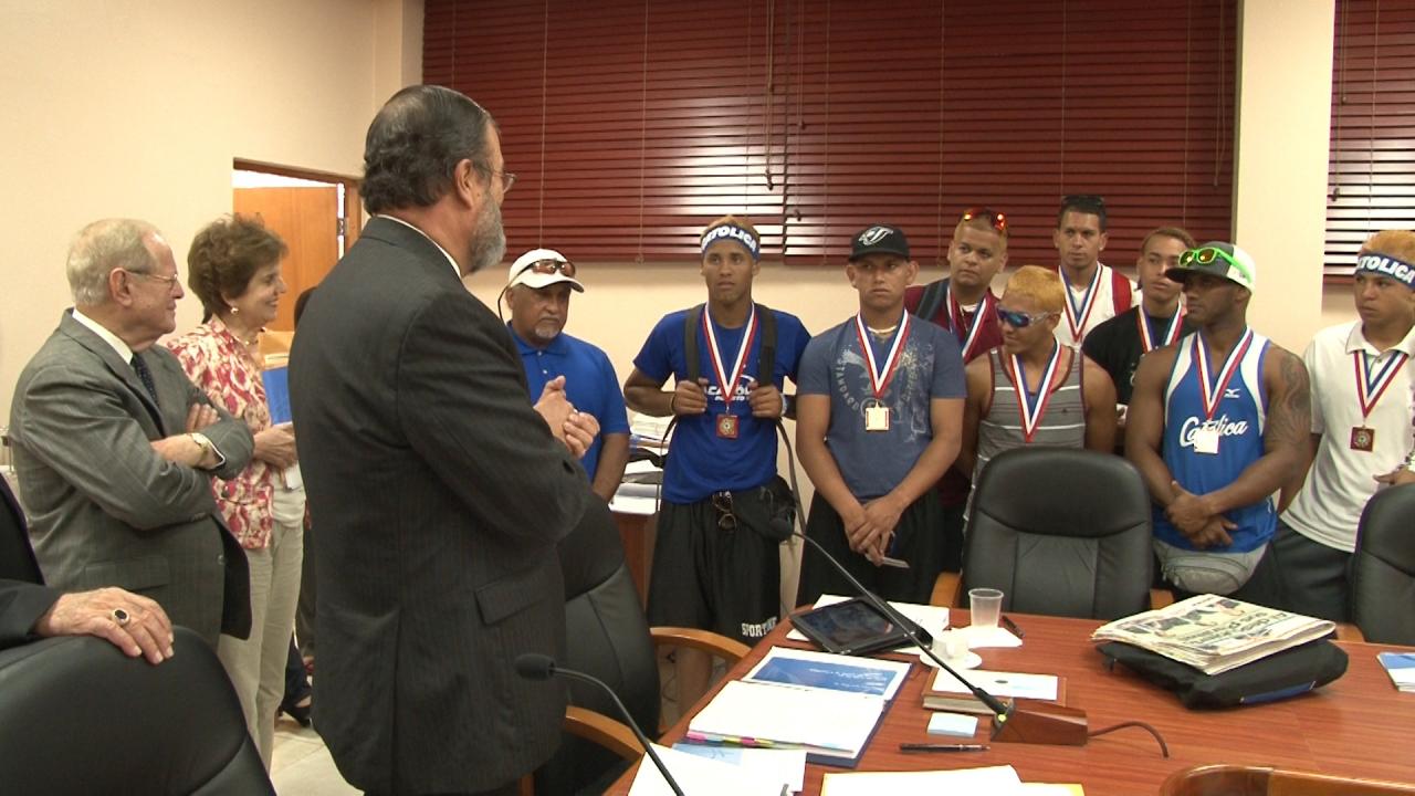 El Presidente les dio la bienvenida a los atletas y les presentó a los miembros de la Junta de Síndicos, compuesta por la Conferencia Episcopal de Puerto Rico, otros miembros del clero y distinguidos profesionales.